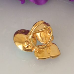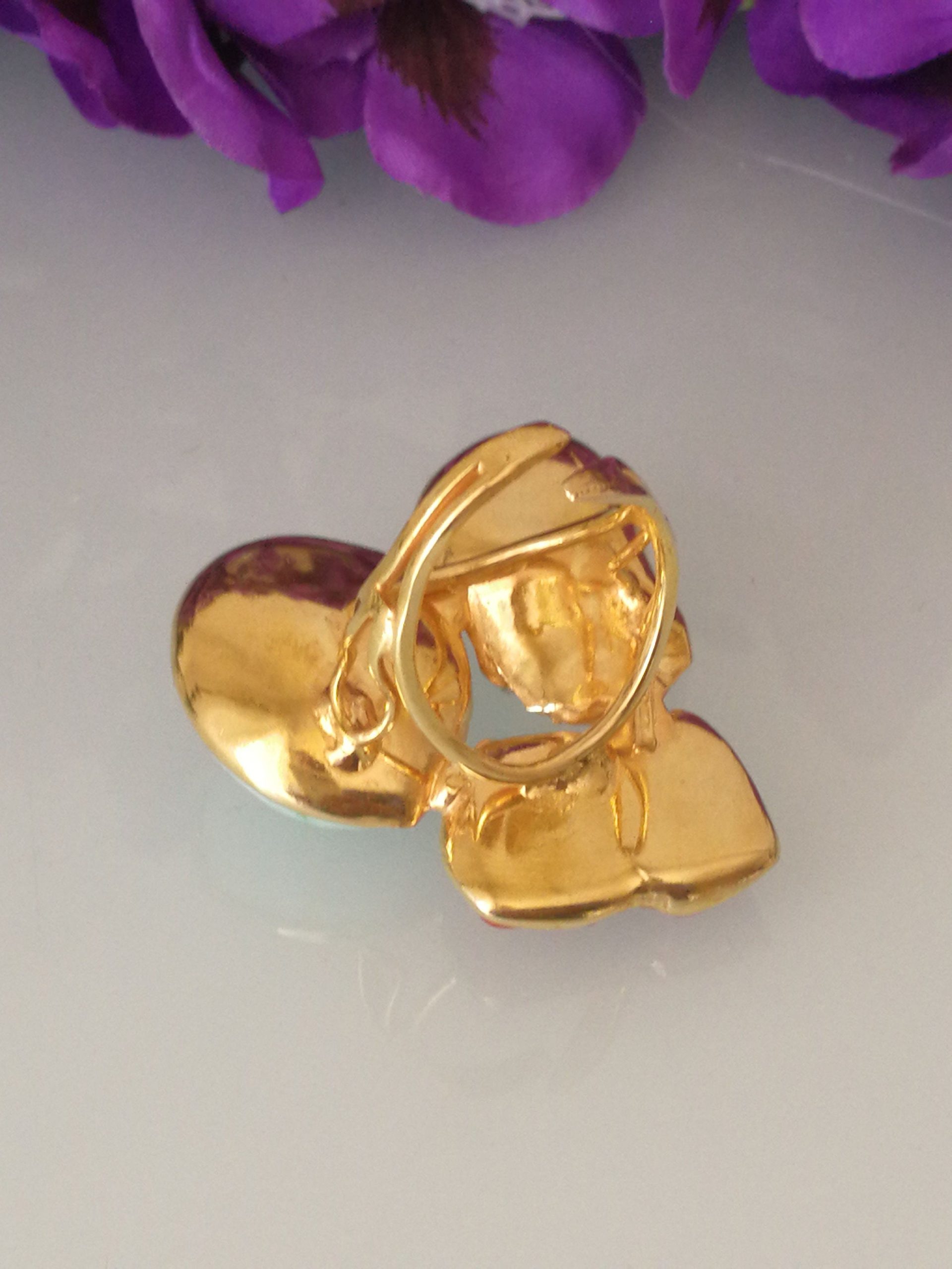 Anello rosa corallo rosa imitazione e ottone dorato, anello fiore