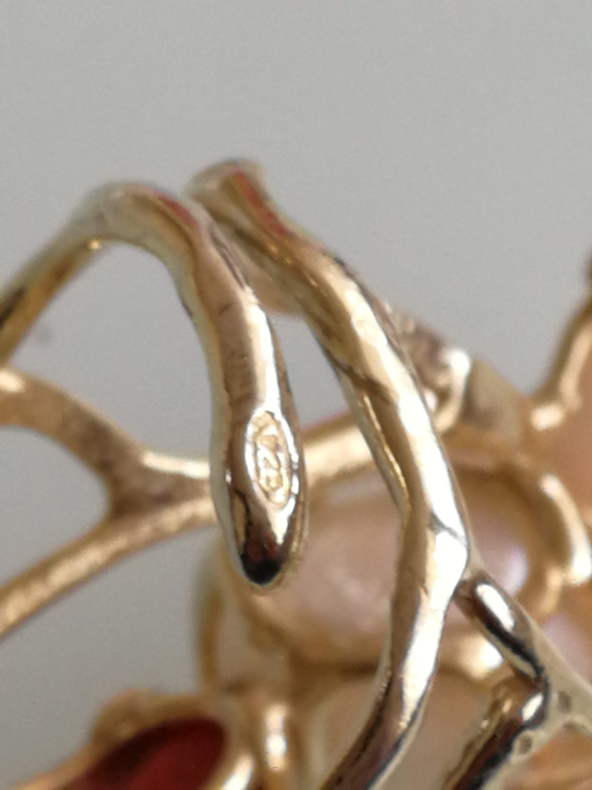 Anello maxi corallo rosa naturale di Sciacca e ottone dorato, gioielli italiani