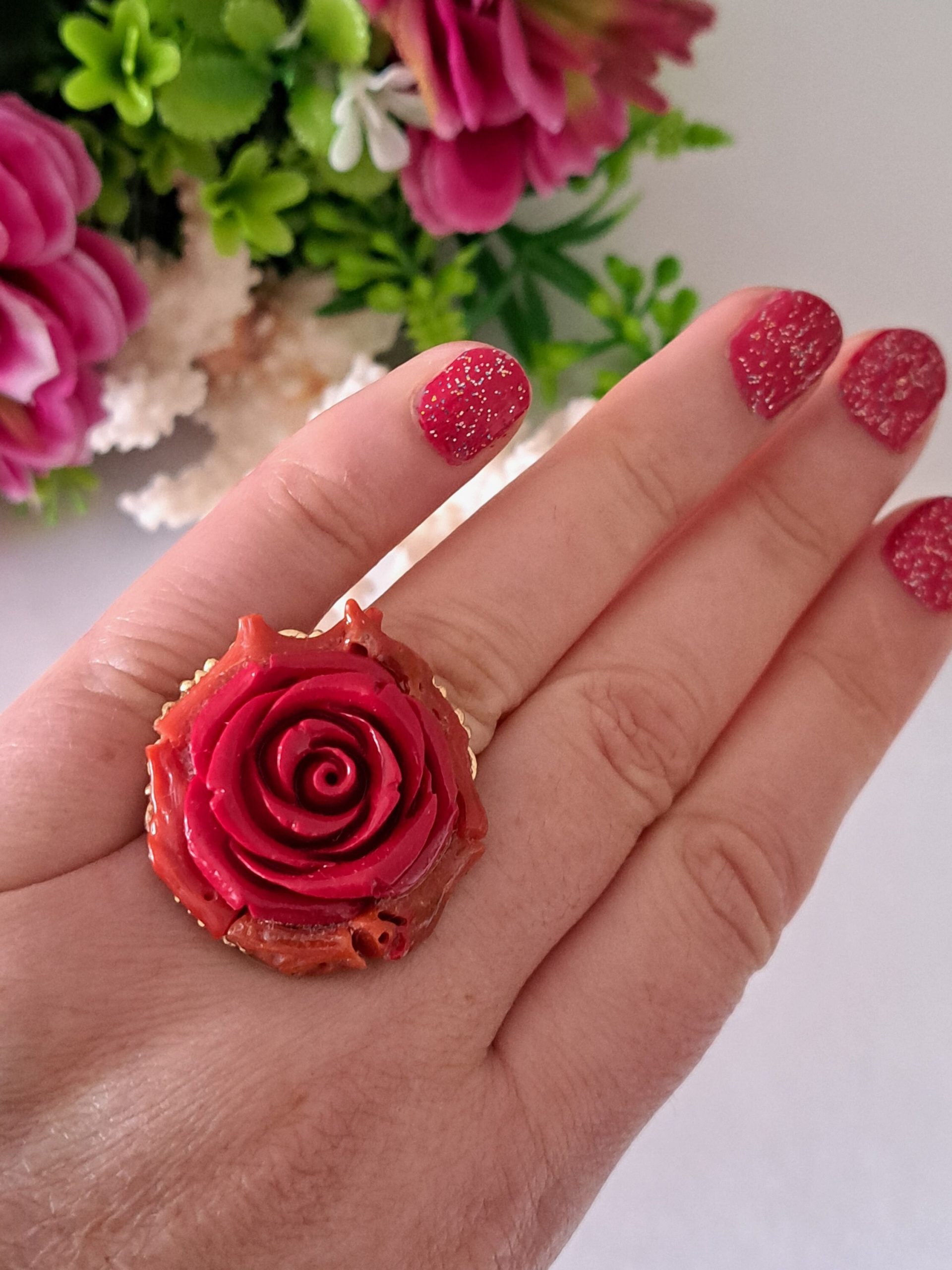 Categoria: Anelli pietre, perle e corallo Tag: anello_corallo, anello_fiore, anello_maxi, anello_perle, anello_rosso, corallo_naturale, corallo_rosso, rosa_rossa