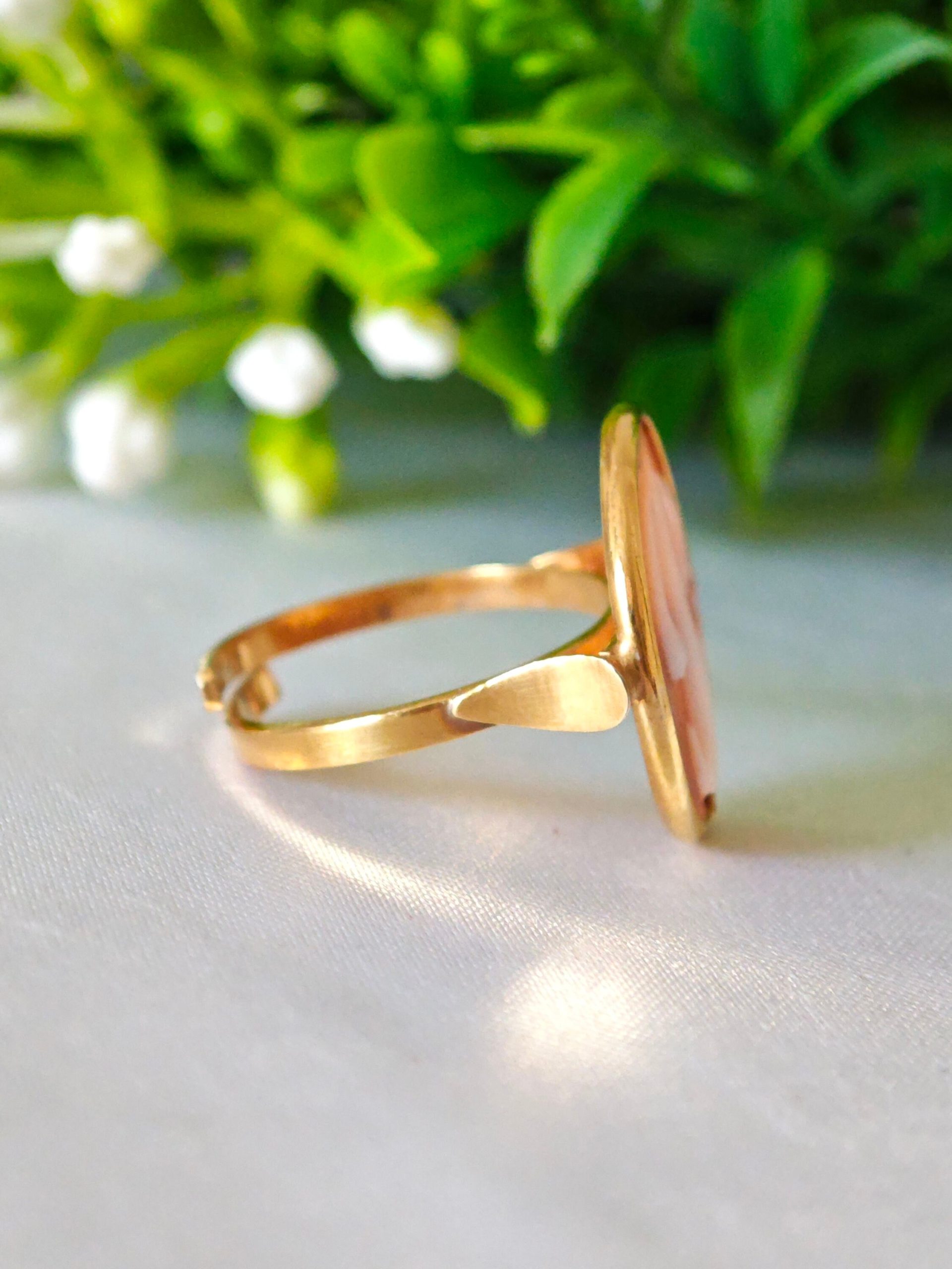 Anello cammeo pasta di corallo bianco e ottone dorato , anello maxi, gioielli italiani