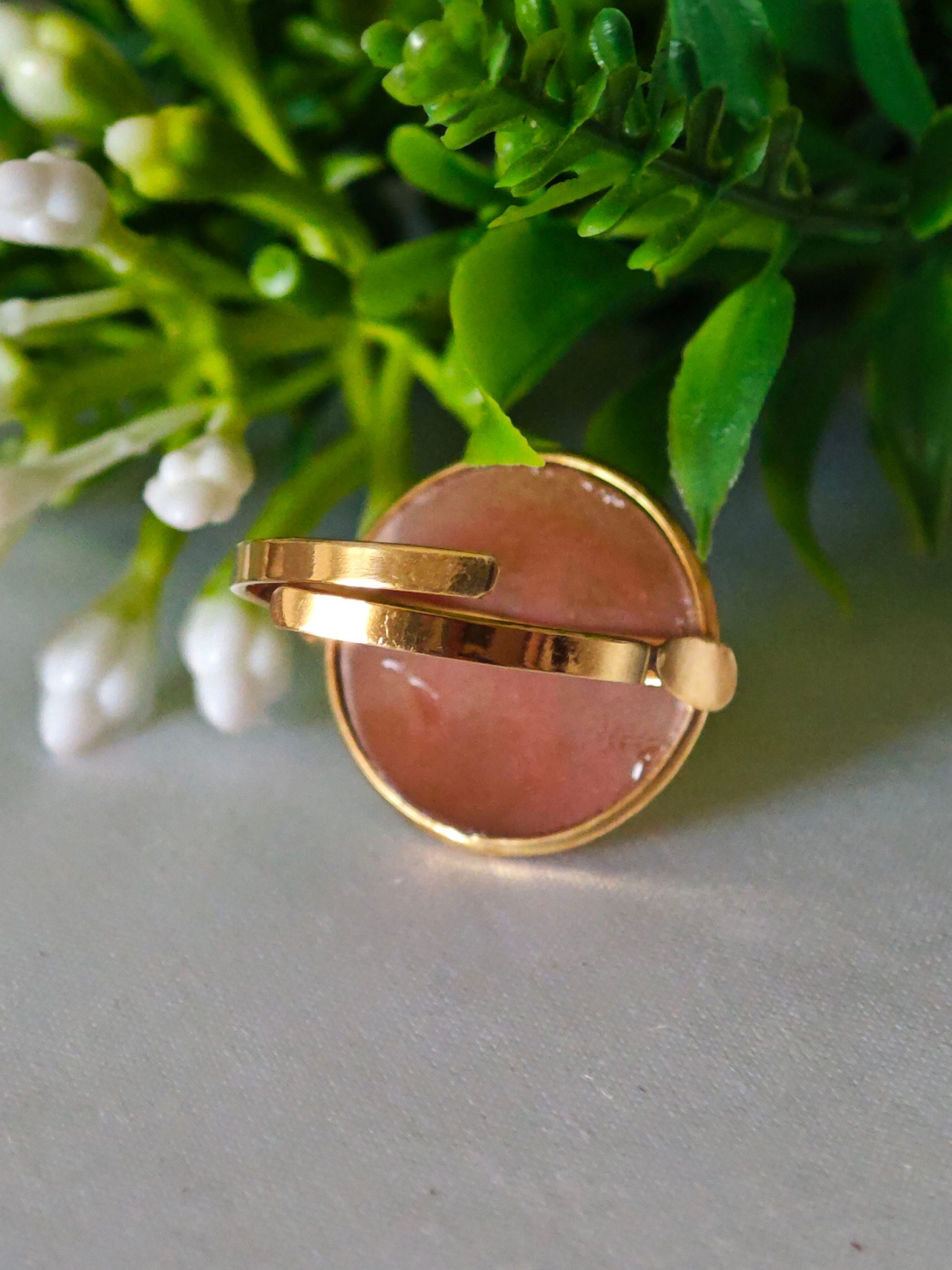 Anello maxi pietre dure pietra quarzo rosa, anello ottone