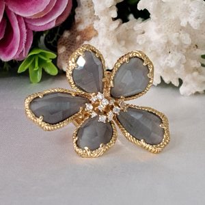 Anello maxi fiore quarzo grigio occhio di gatto e zirconi