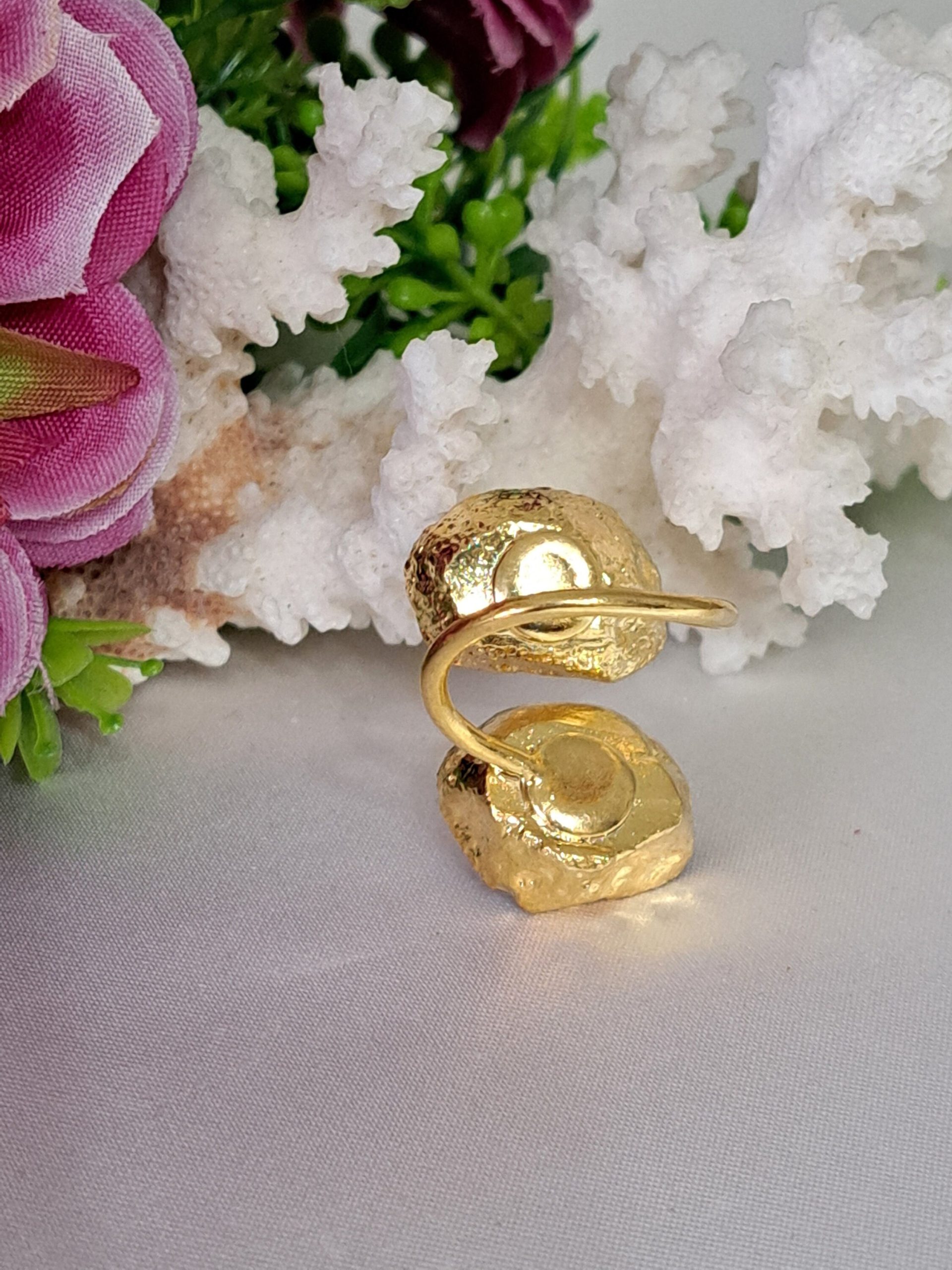 Anello rosa pasta di corallo rosso e ottone dorato , anello maxi