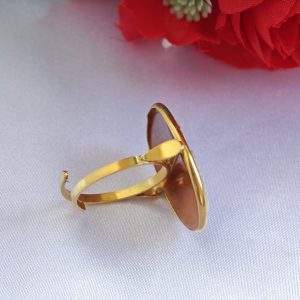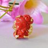 Anello rosa pasta di corallo rosso e ottone dorato , anello maxi