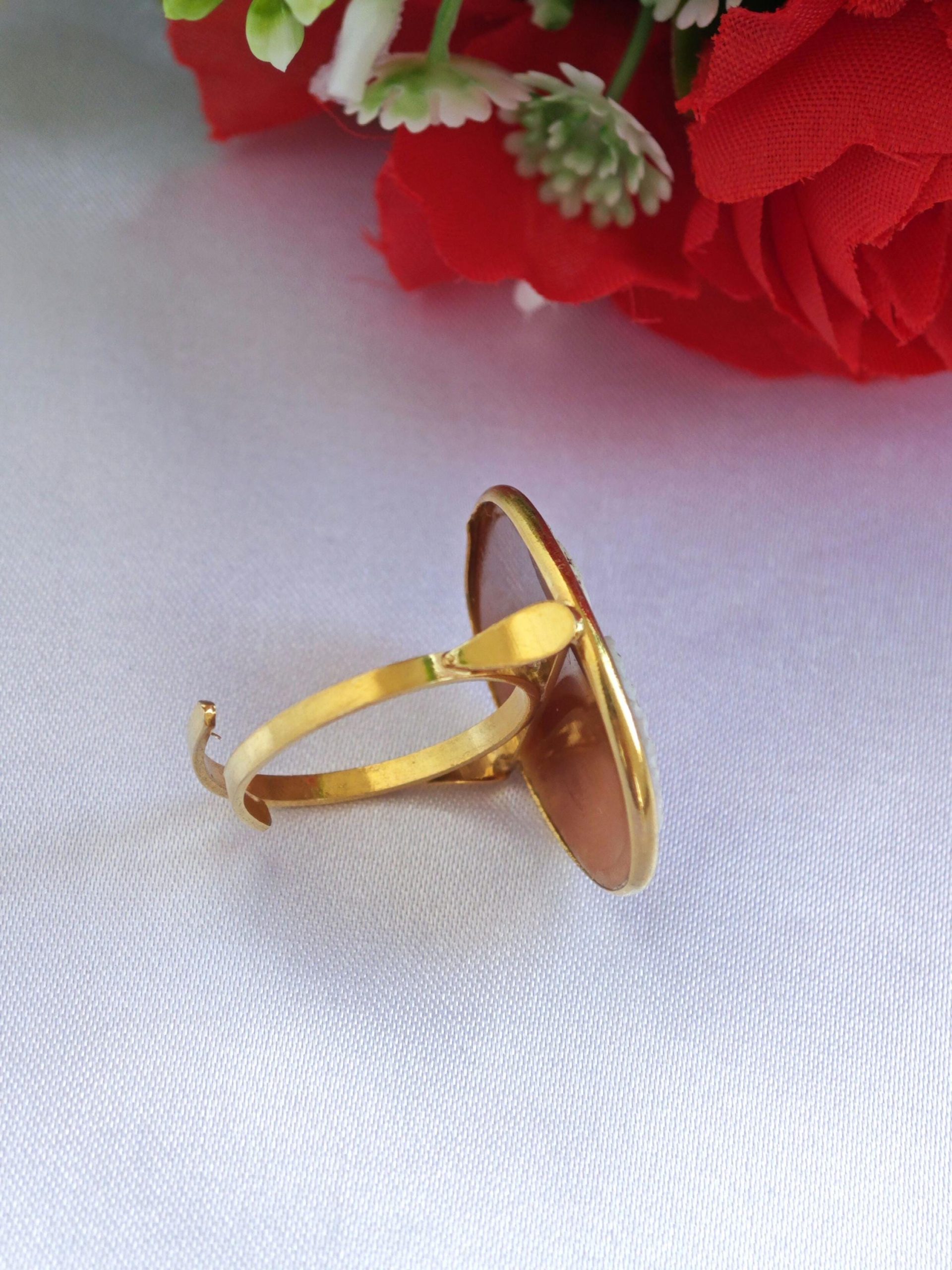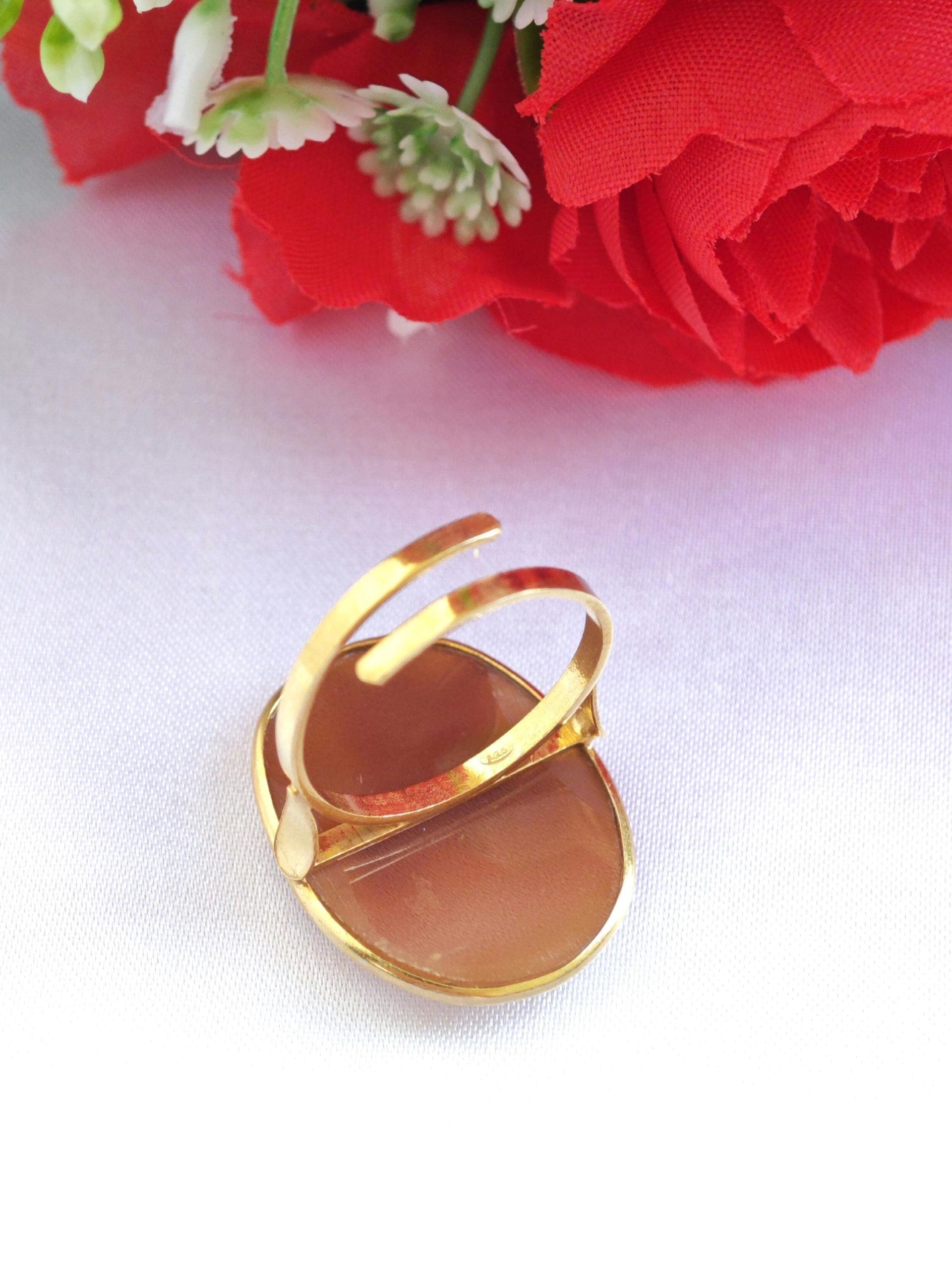 Anello cammeo pasta di turchese e ottone dorato , anello maxi, gioielli italiani