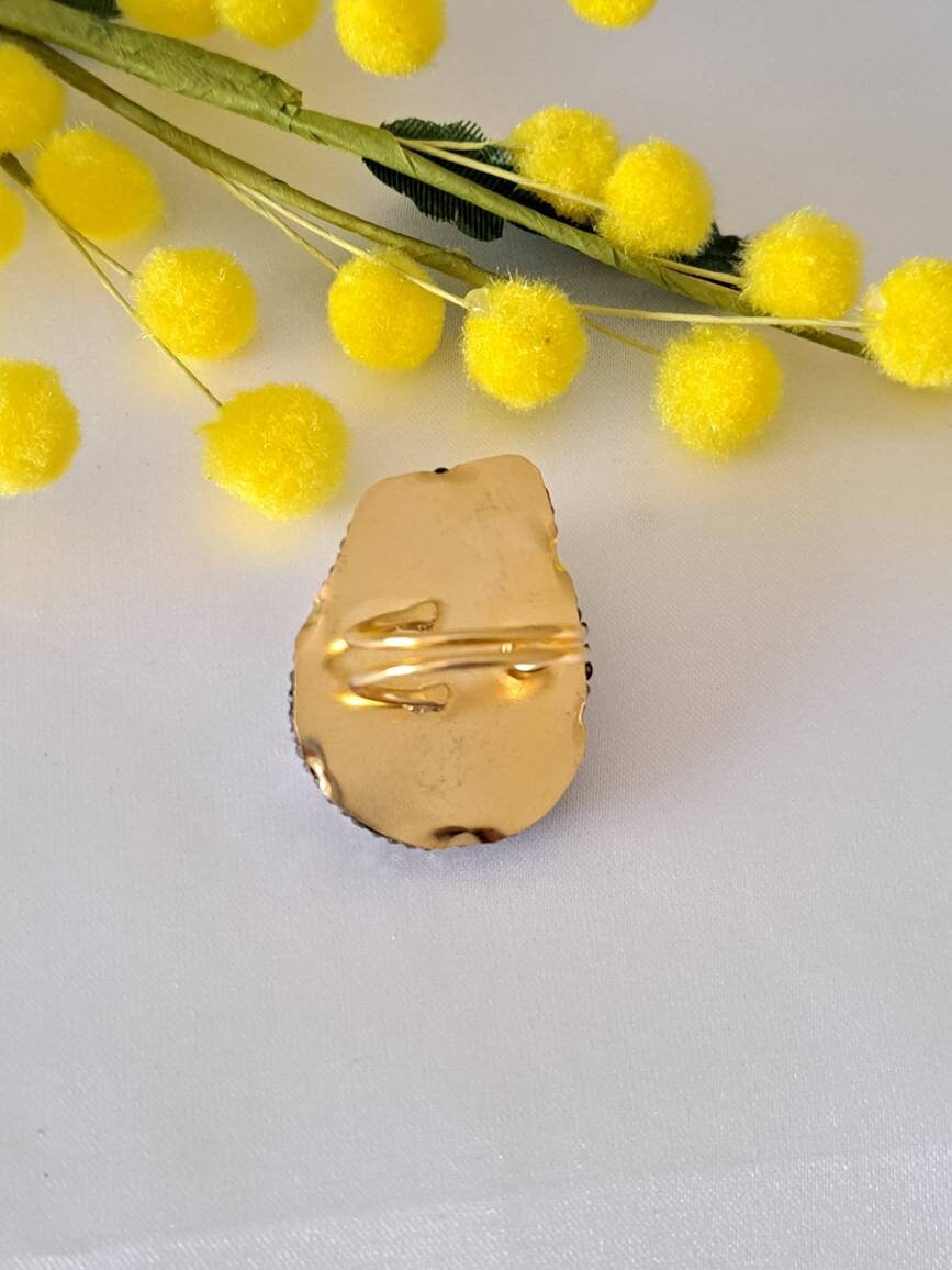Anello cammeo pasta di turchese e ottone dorato , anello maxi, gioielli italiani