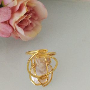 Anello argento 925 placcato oro con perla bianca barocca , anello maxi, gioielli italiani