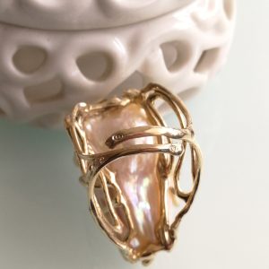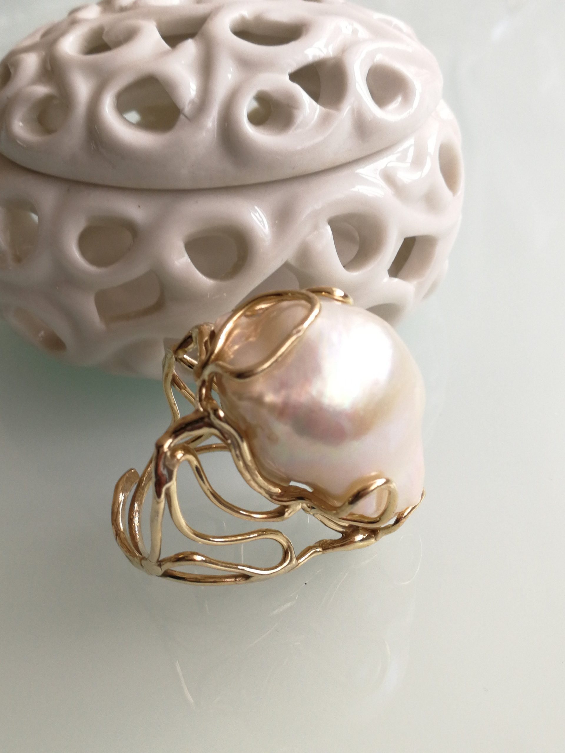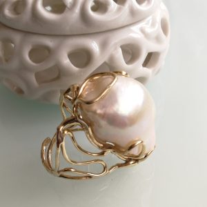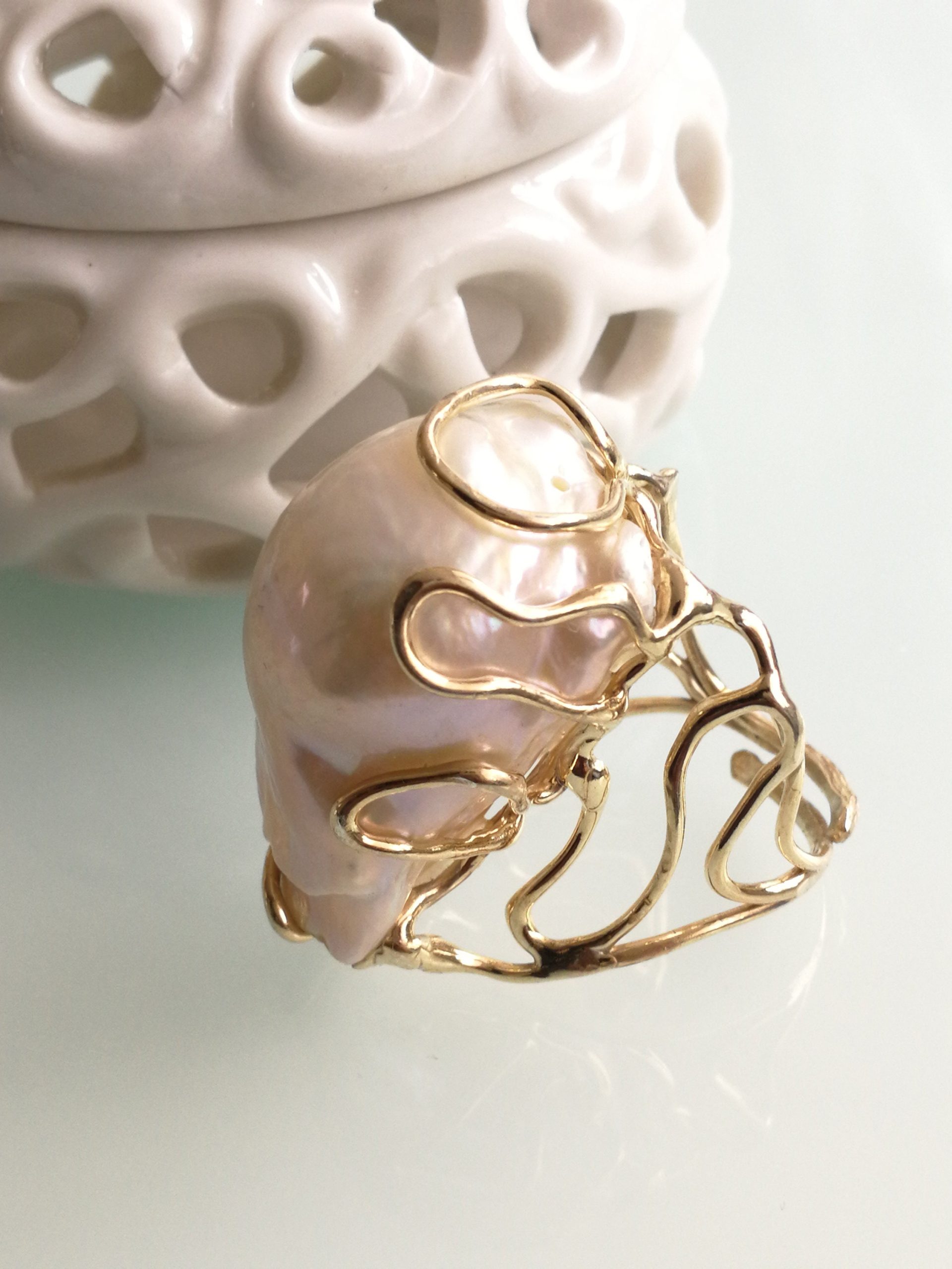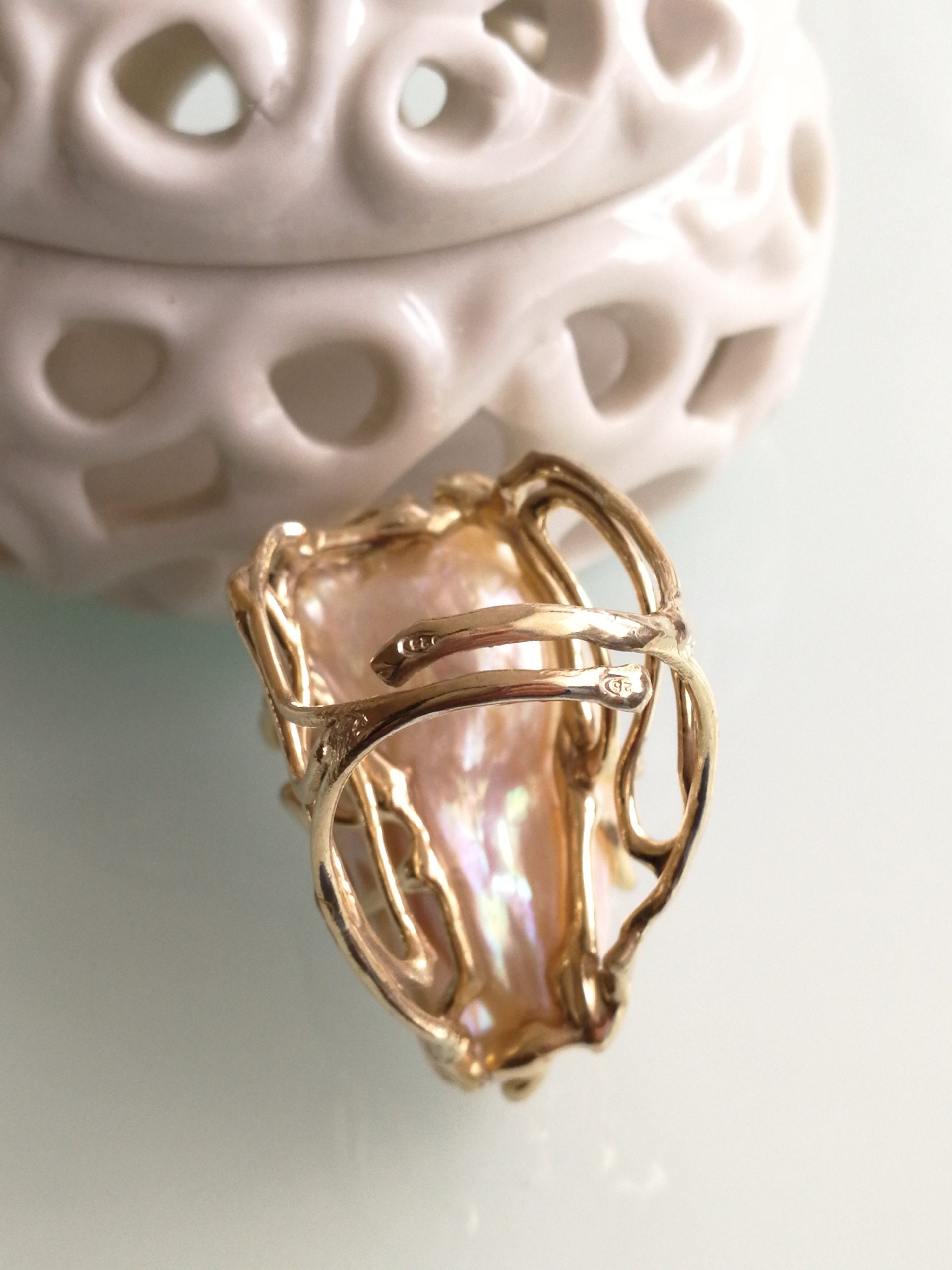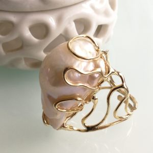 Anello argento 925 placcato oro con perla bianca barocca , anello maxi, gioielli italiani