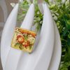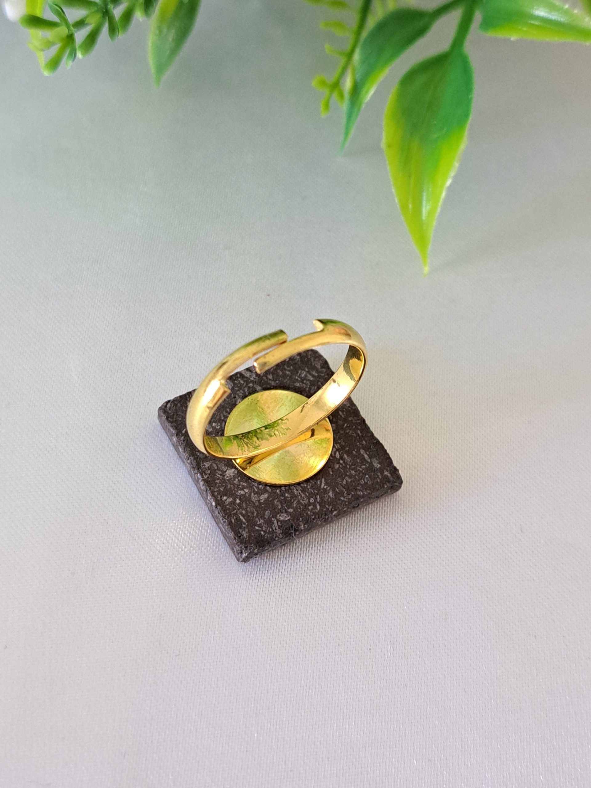 Anello in ottone dorato con piastrella pietra lavica smaltata con motivi Caltagirone, 2×2 cm dimensioni