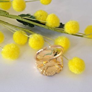 Anello pietra agata druzzy rosa e ottone dorato
