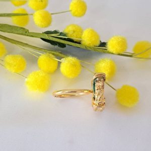Anello rosa corallo imitazione , anello fiore e ottone dorato