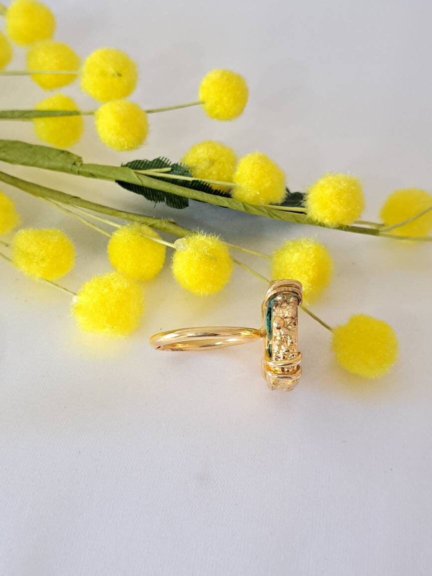 Anello cammeo pasta di turchese e ottone dorato , anello maxi, gioielli italiani