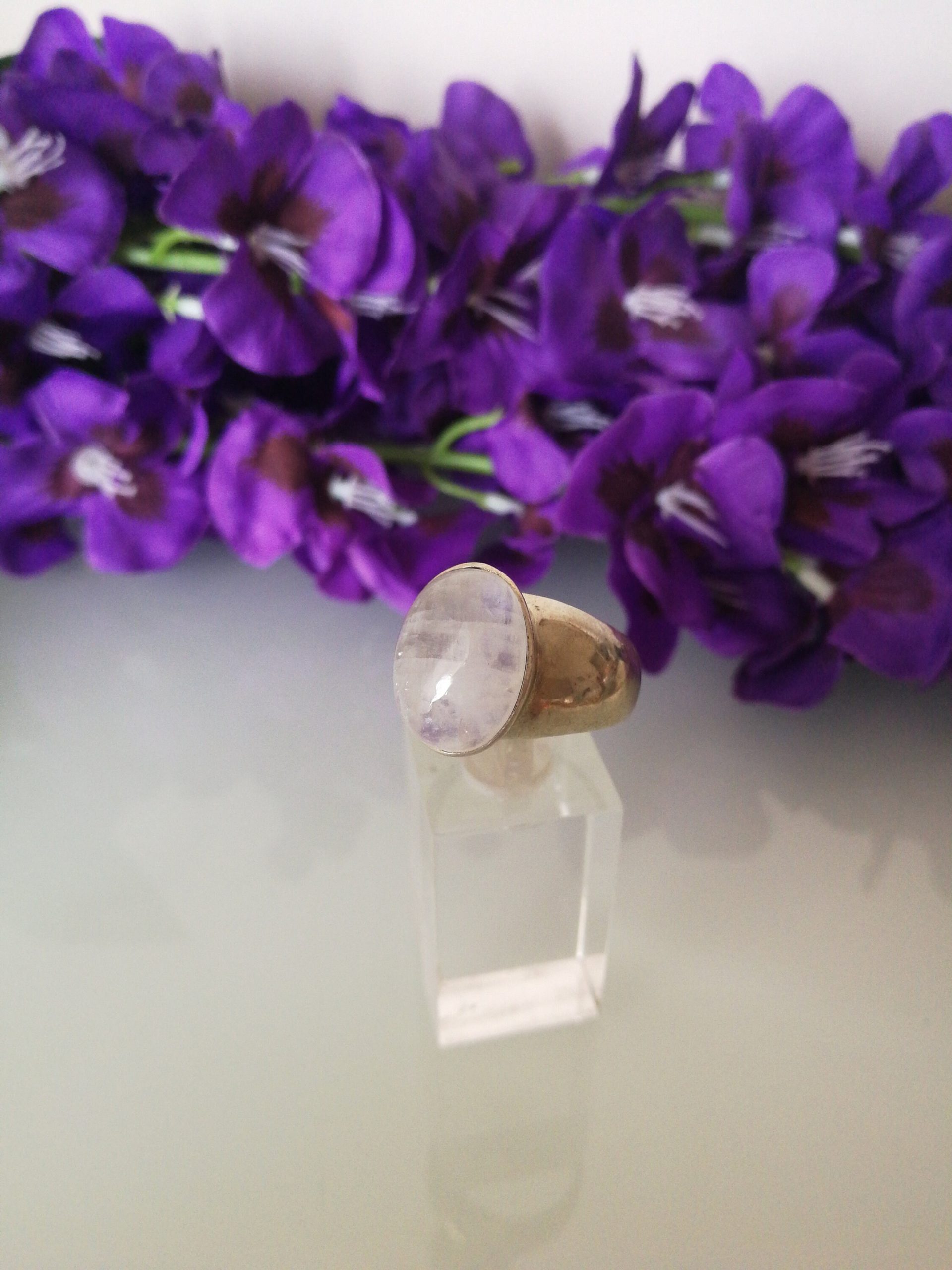 Anello elegante con pietra vera di Luna, montatura in argento,925.Misura 11,5 Usa/ Italia 21.