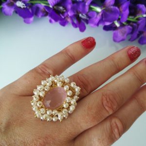 Tag: Anello maxi, Anello perla, anello quarzo, Anello rosa, Perla bianca, Quarzo rosa
