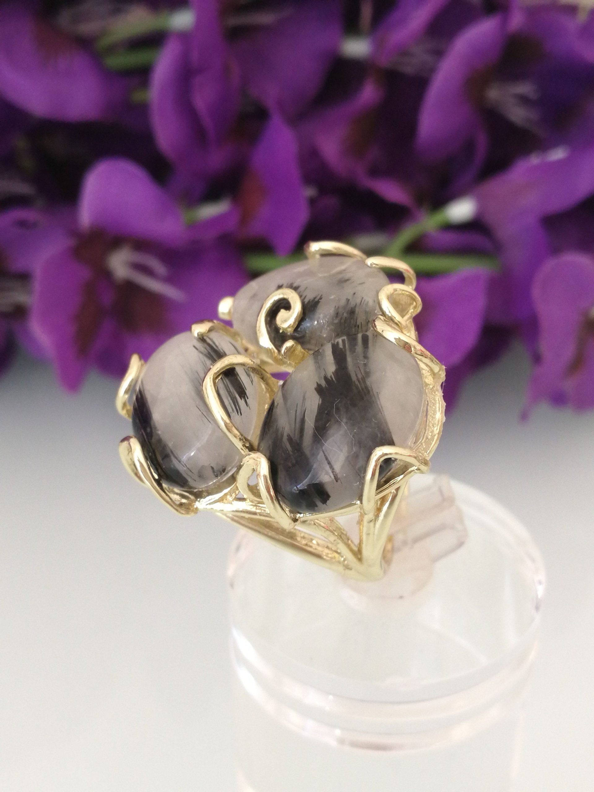 Anello pietre di quarzo tigre .Anello pietre multiple