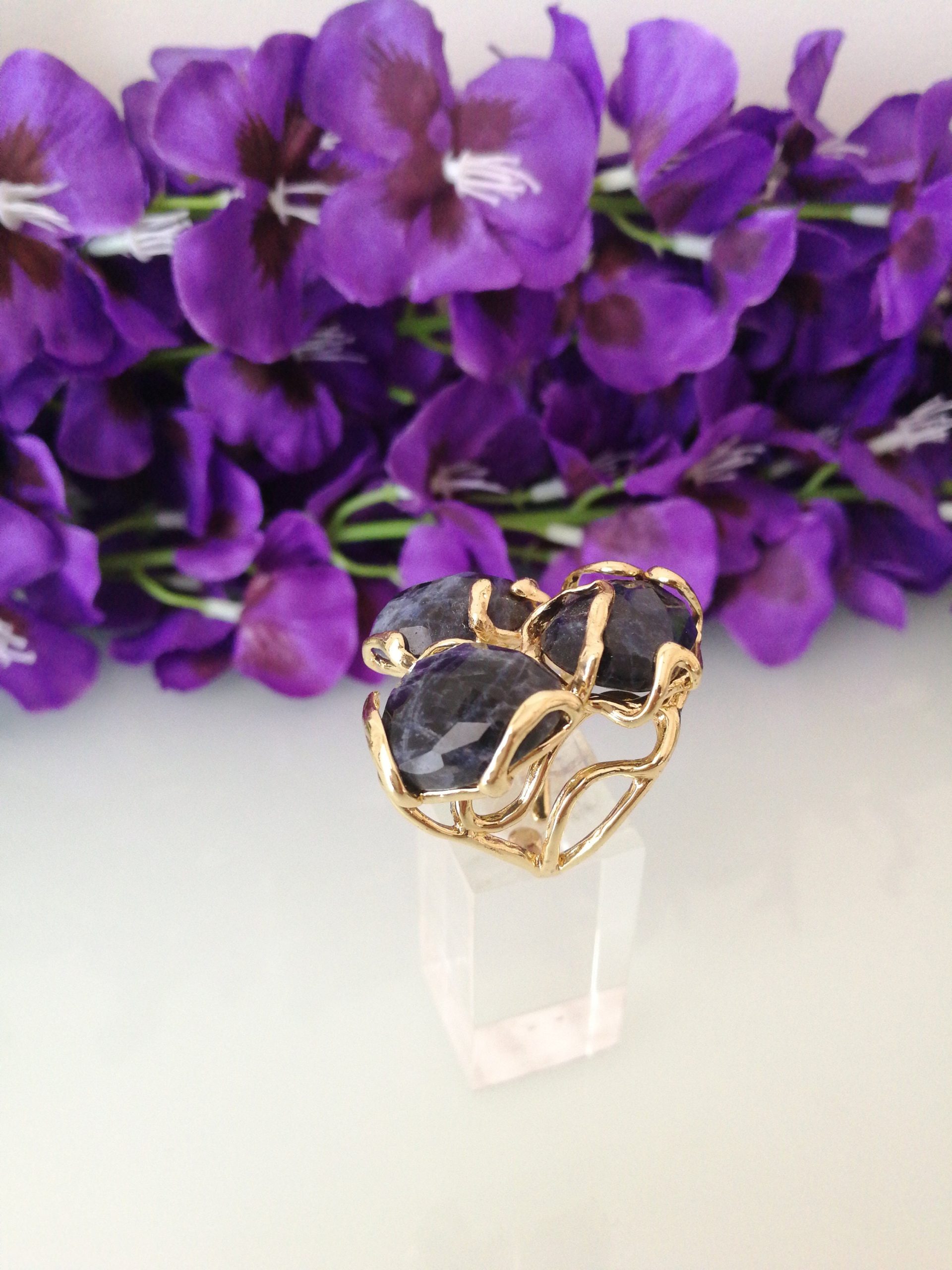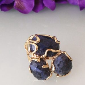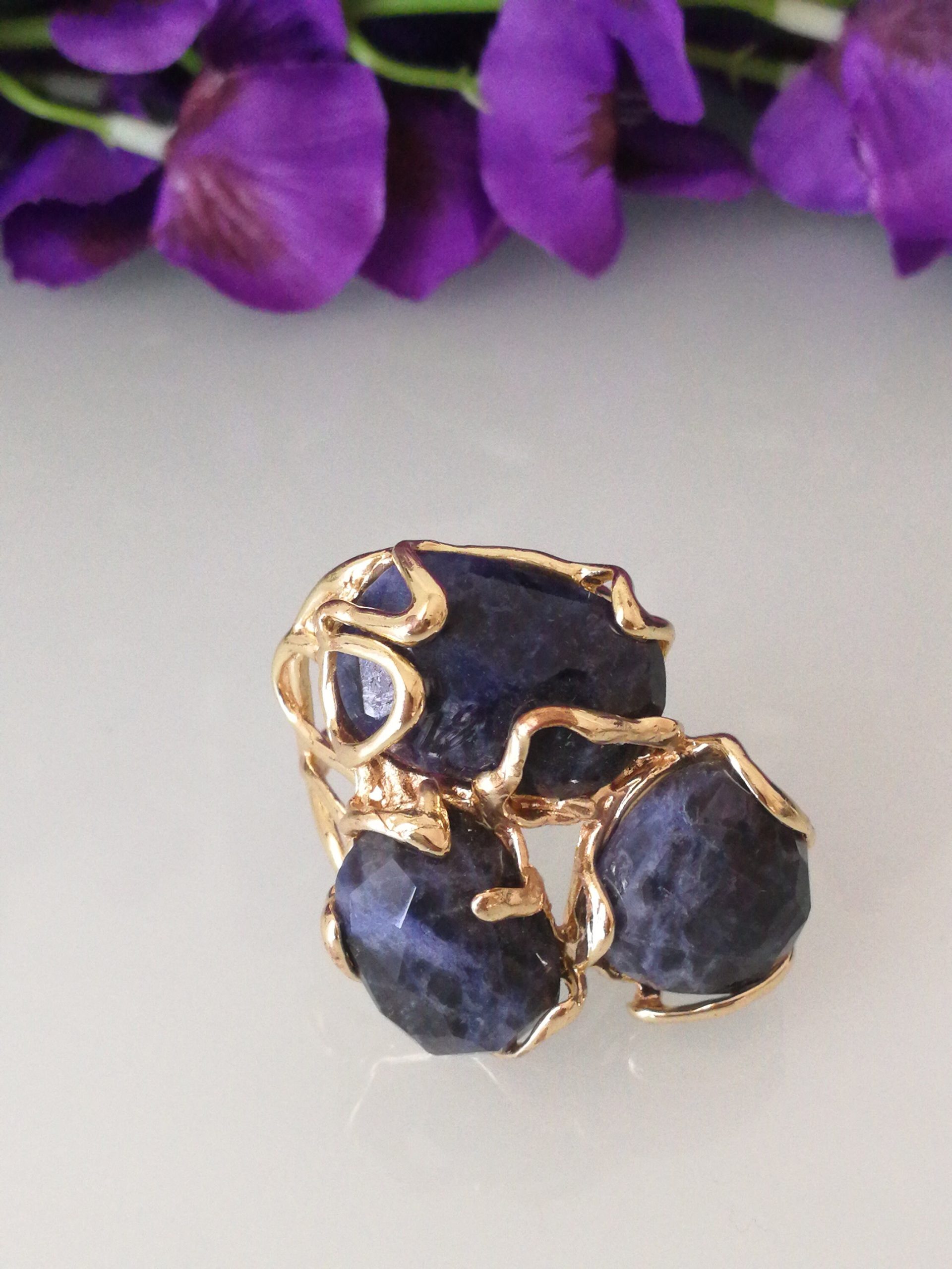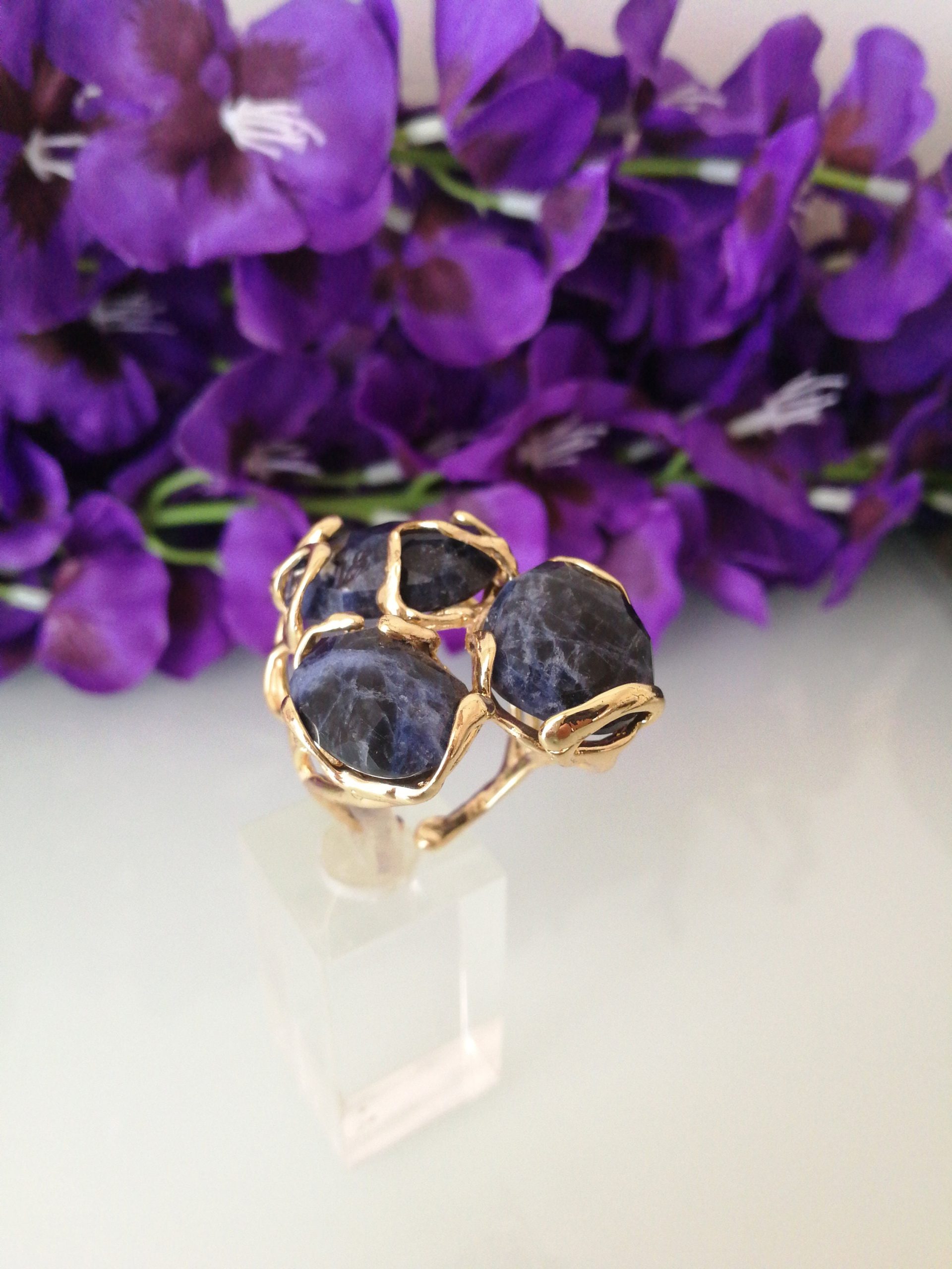 Anello pietre sodalite blu. Anello elegante.Anello pietre multiple.