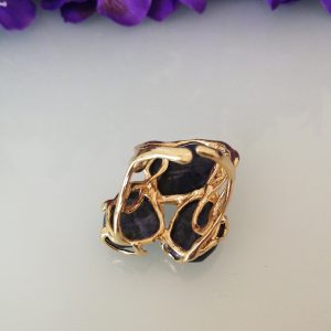 Anello elegante maxi con pietre di sodalite blu sfaccettata ,misura pietra 3×3 ,montatura in ottone placcata oro.Misura anello regolabile.