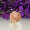 Anello rosa corallo rosa imitazione e ottone dorato, anello fiore