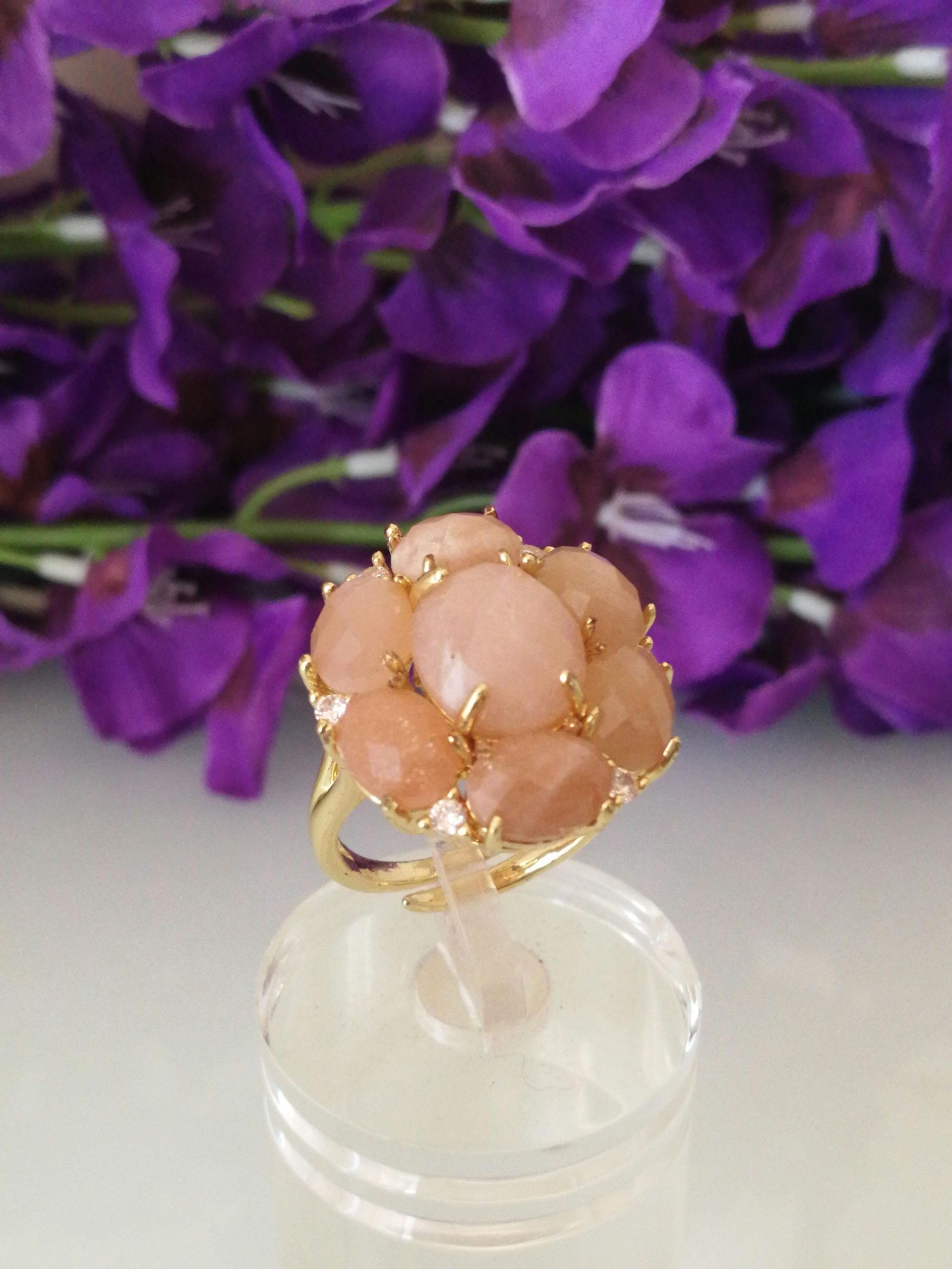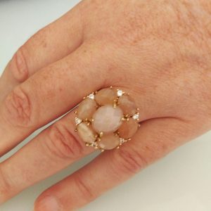 Anello pietre vere di quarzo rosa . Anello elegante.Anello pietre multiple.
