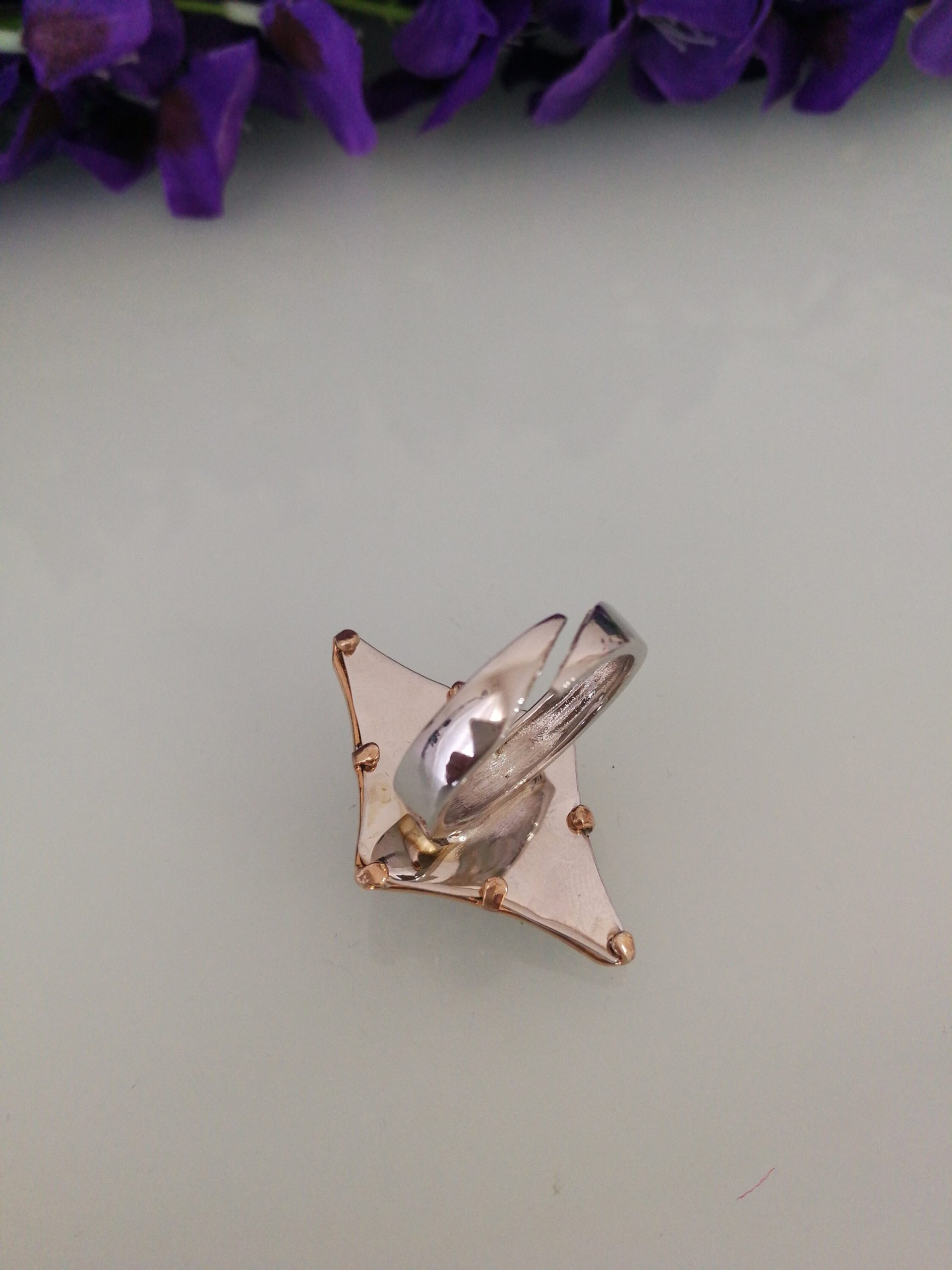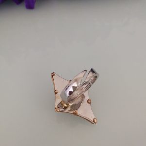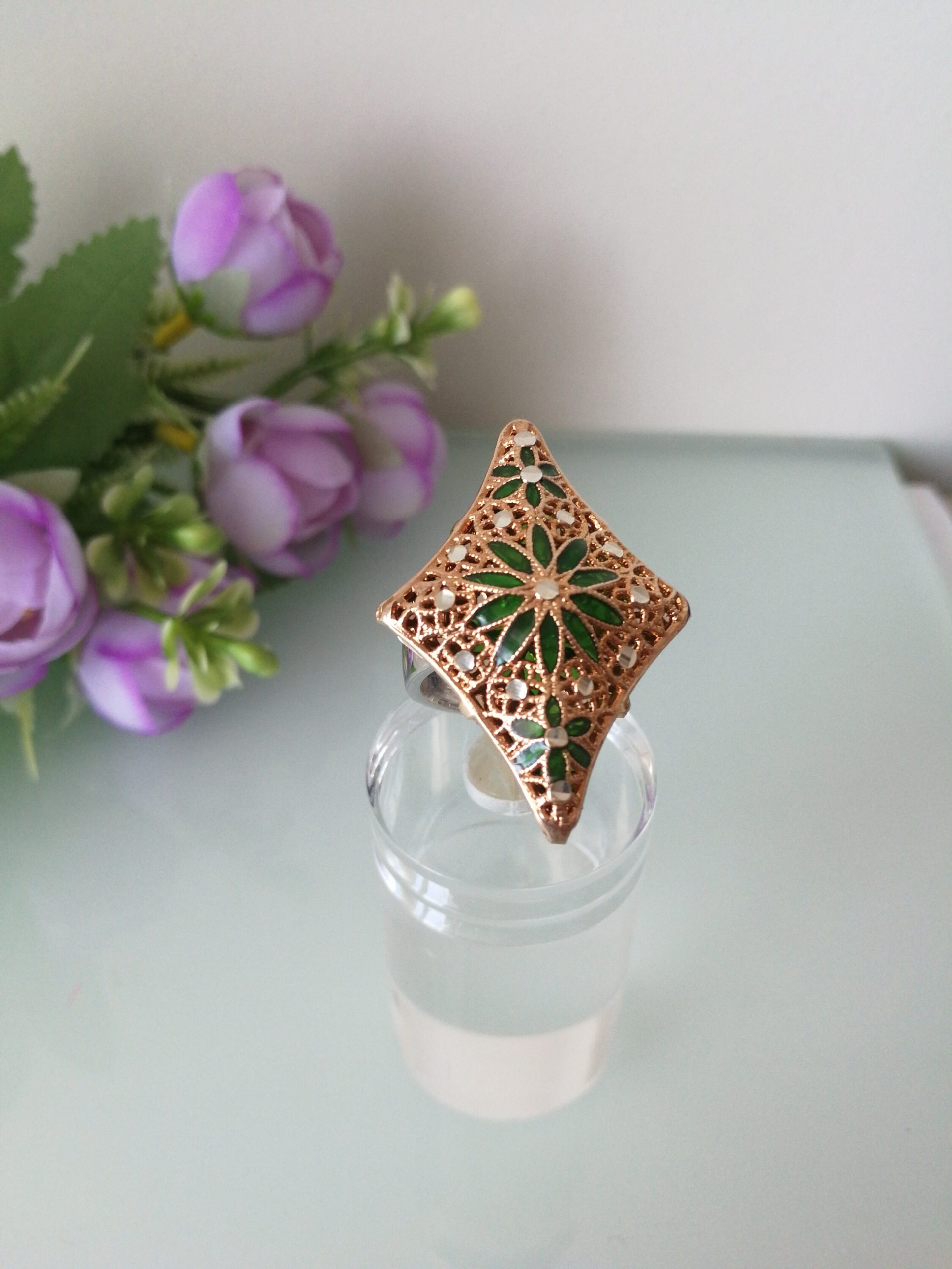 Anello rosa corallo imitazione , anello fiore e ottone dorato