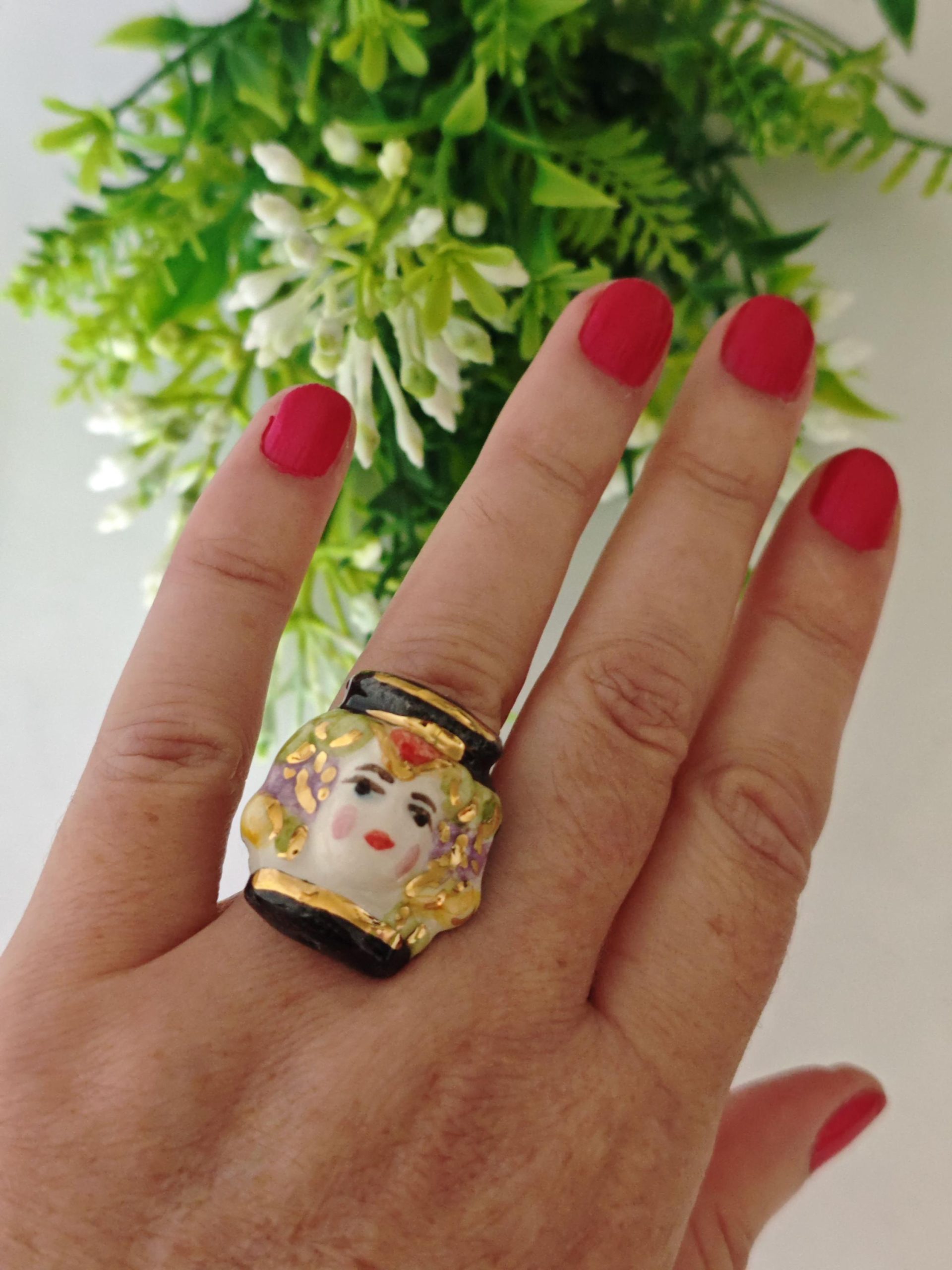 Anello testa di moro in ceramica di Caltagirone, anello siciliano