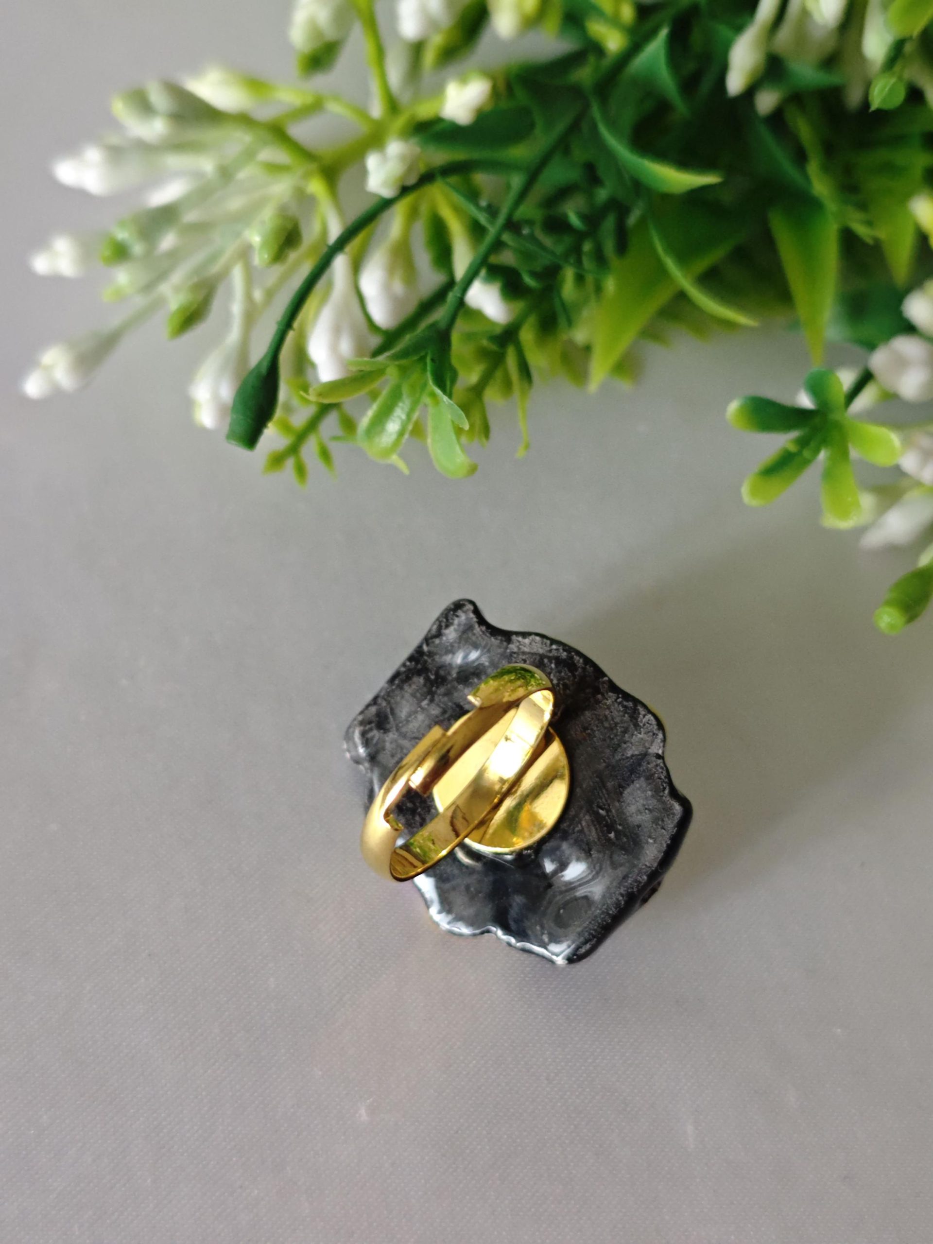 Anello cammeo pasta di turchese e ottone dorato , anello maxi, gioielli italiani