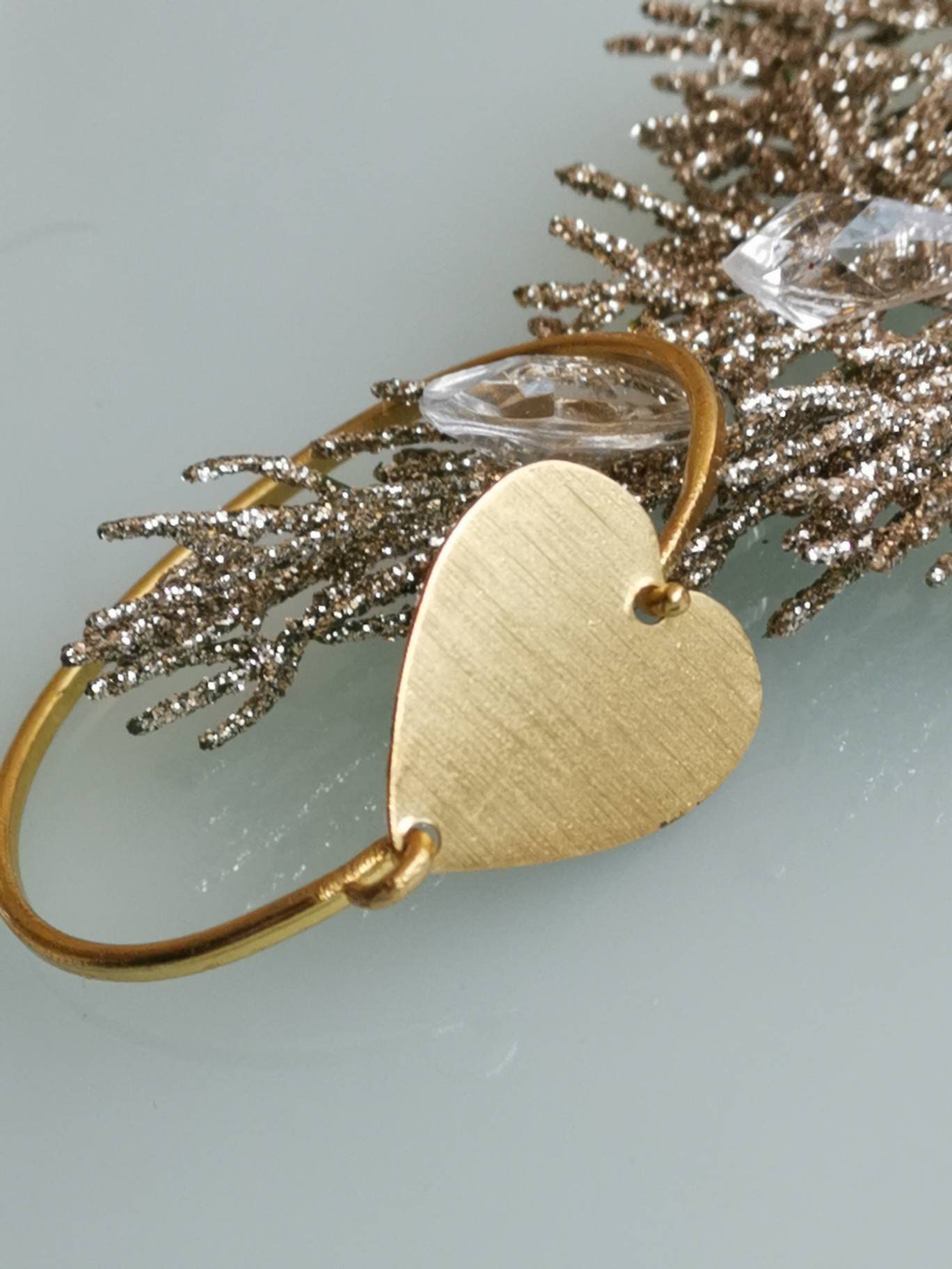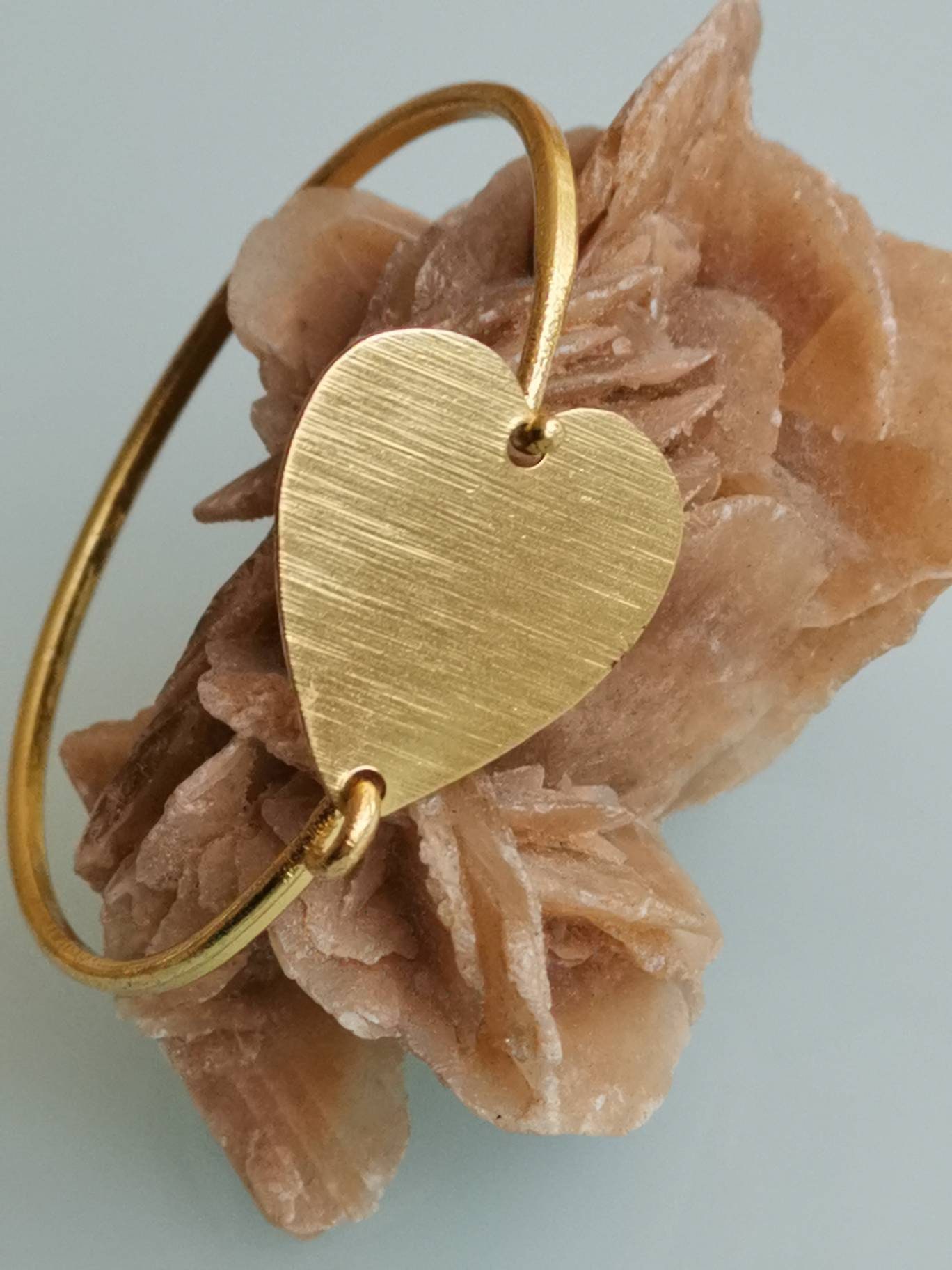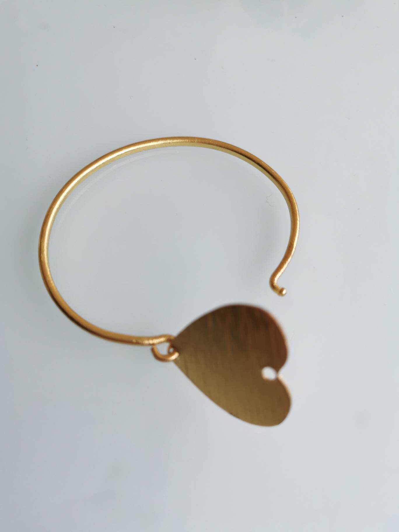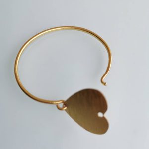 Bracciale artigianale con cuore in ottone satinato, chiusura a gancetto
