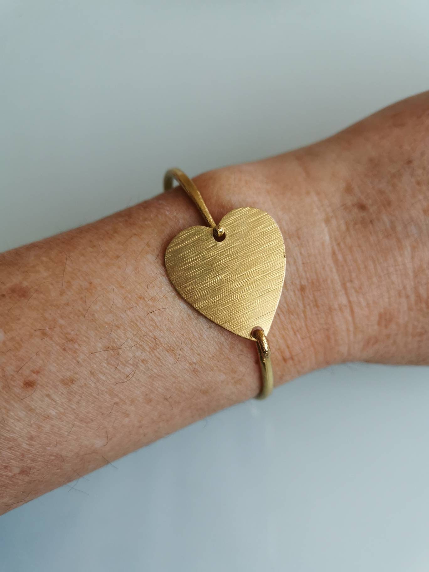 Bracciale artigianale cuore ottone , regalo per lei