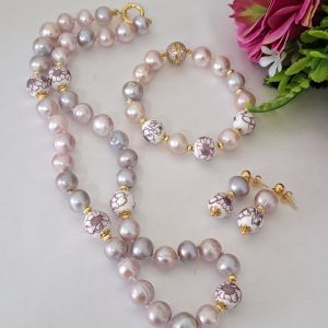 Bracciale CAMELIA con perle rosa e perle porcellana dipinta