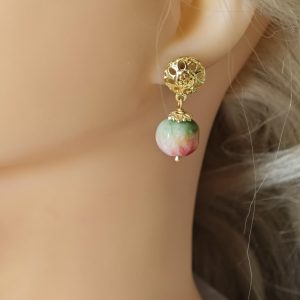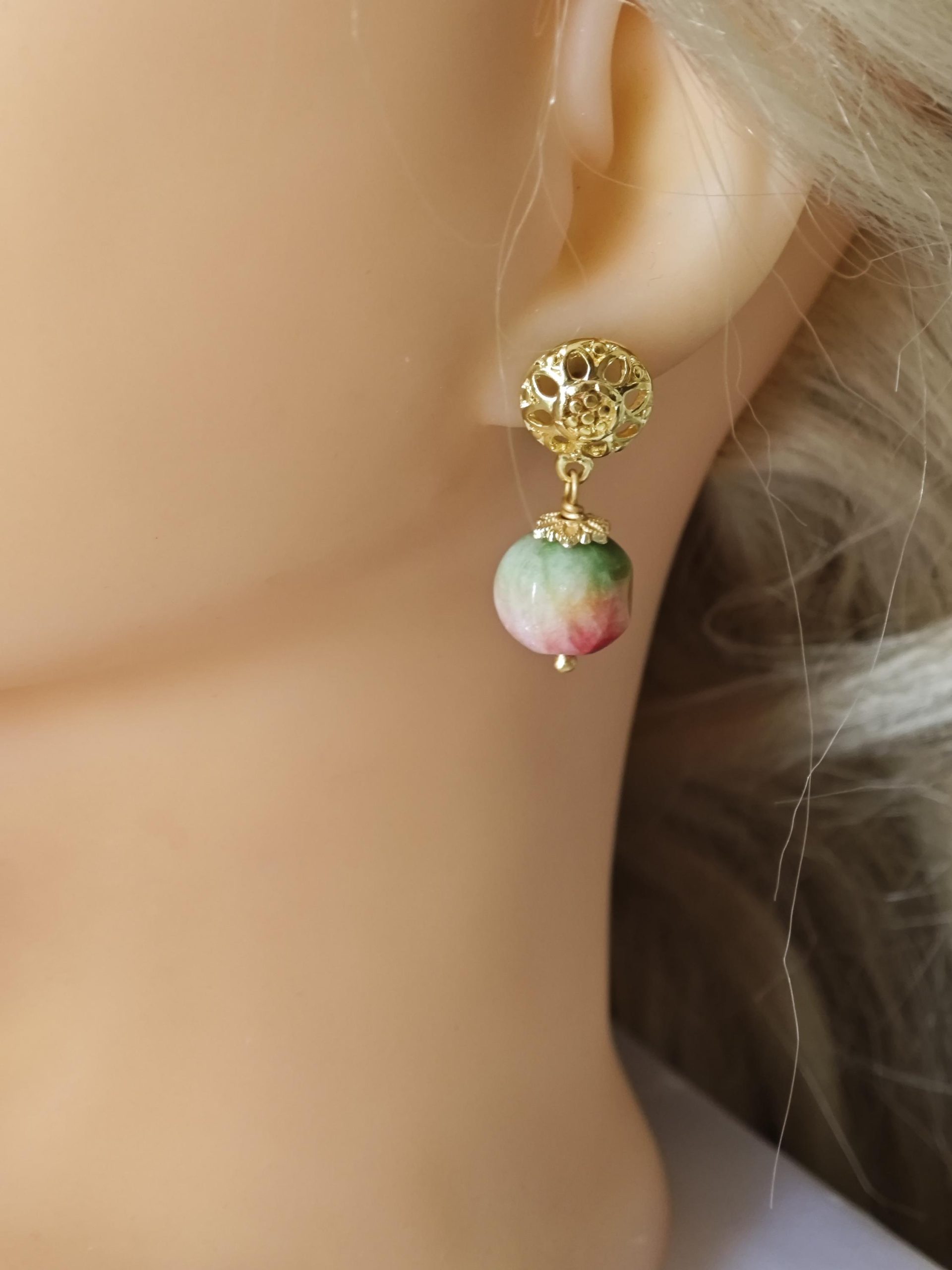 orecchini abbinati con chiusura a perno con farfallina in ottone dorato.