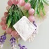 Bracciale corallo rosa bambù con perle bianche , bracciale elastico