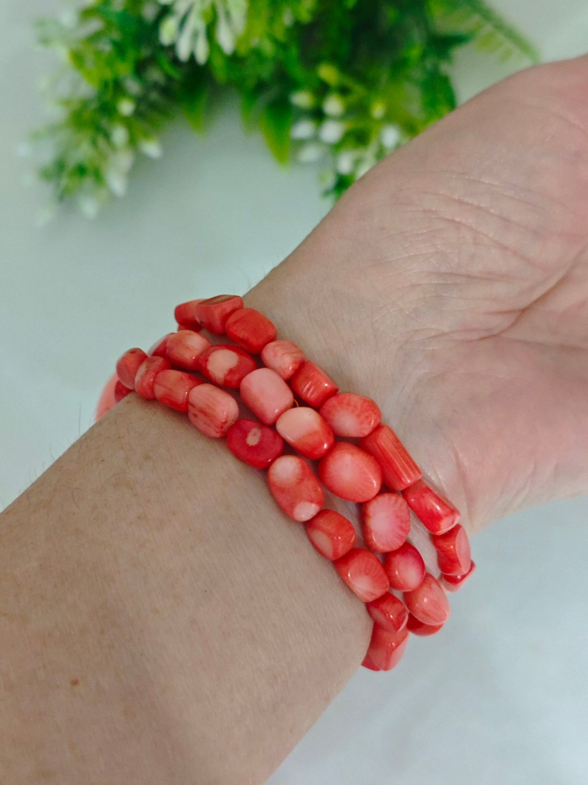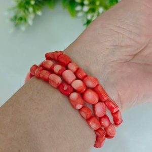 Bracciale corallo rosa e rosa maxi , bracciale 3 fili