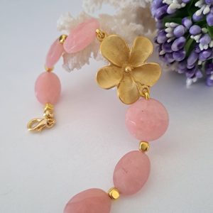 Bracciale con orecchini pietre dure giada , angelite rosa e ottone dorato, set pietre dure giada