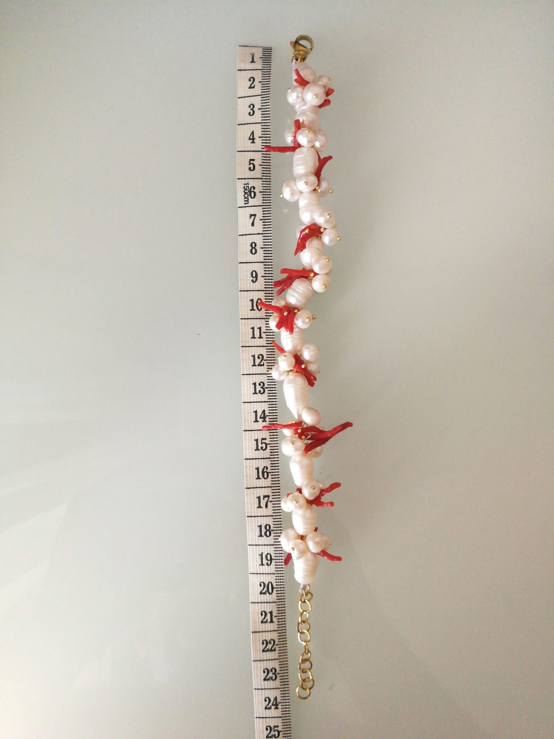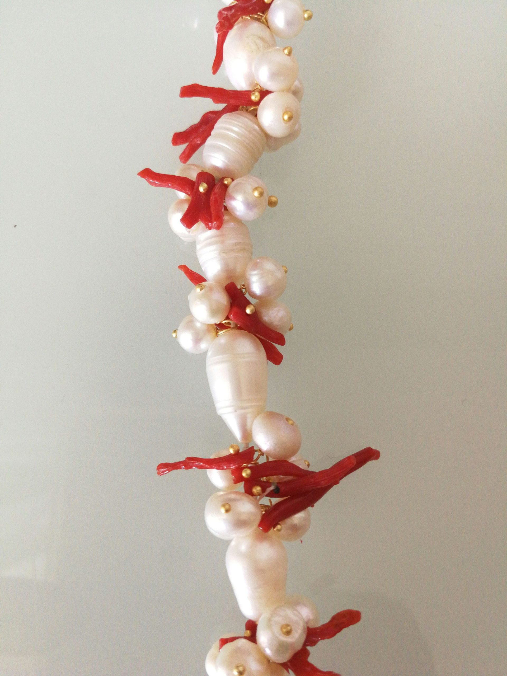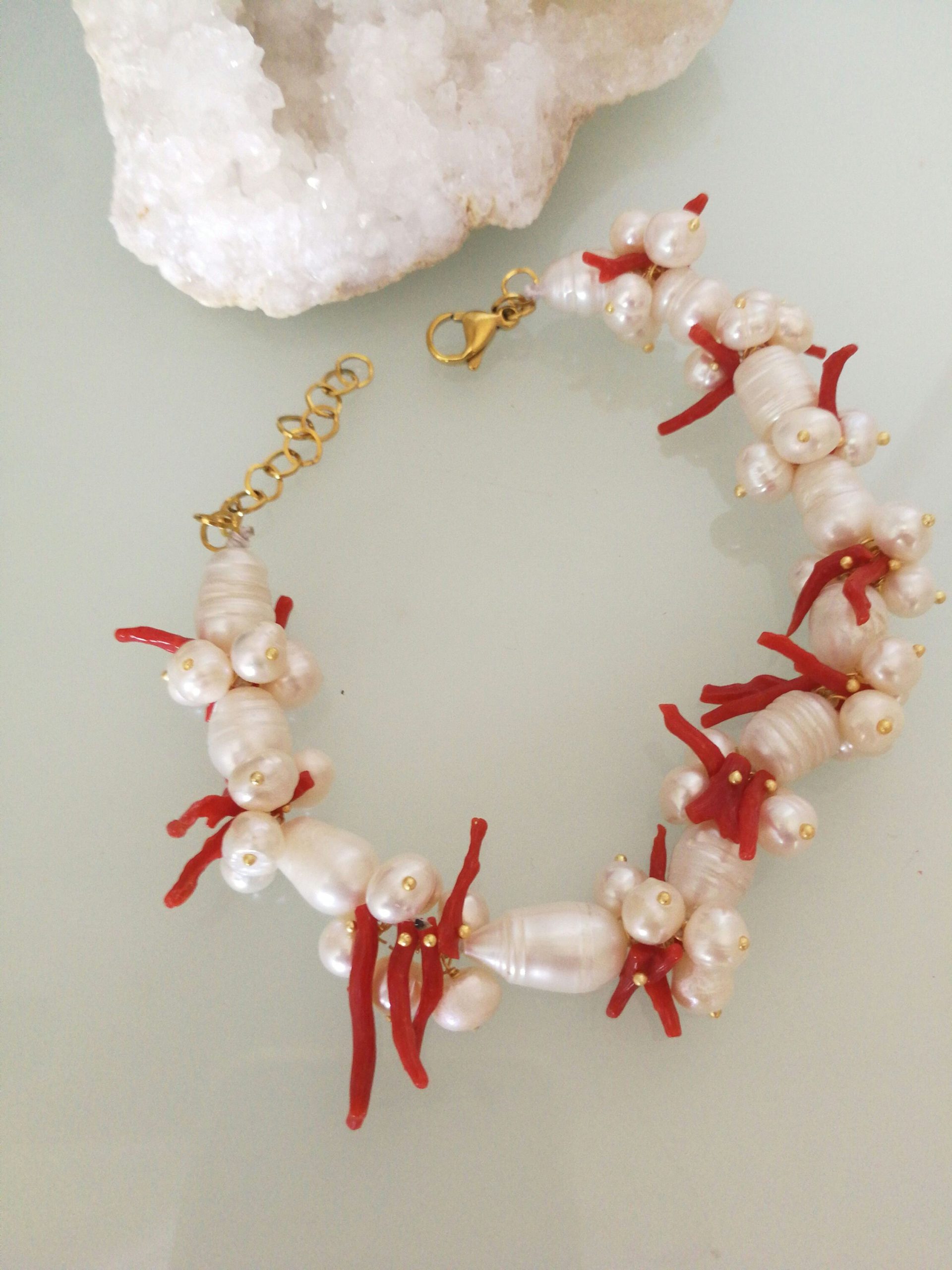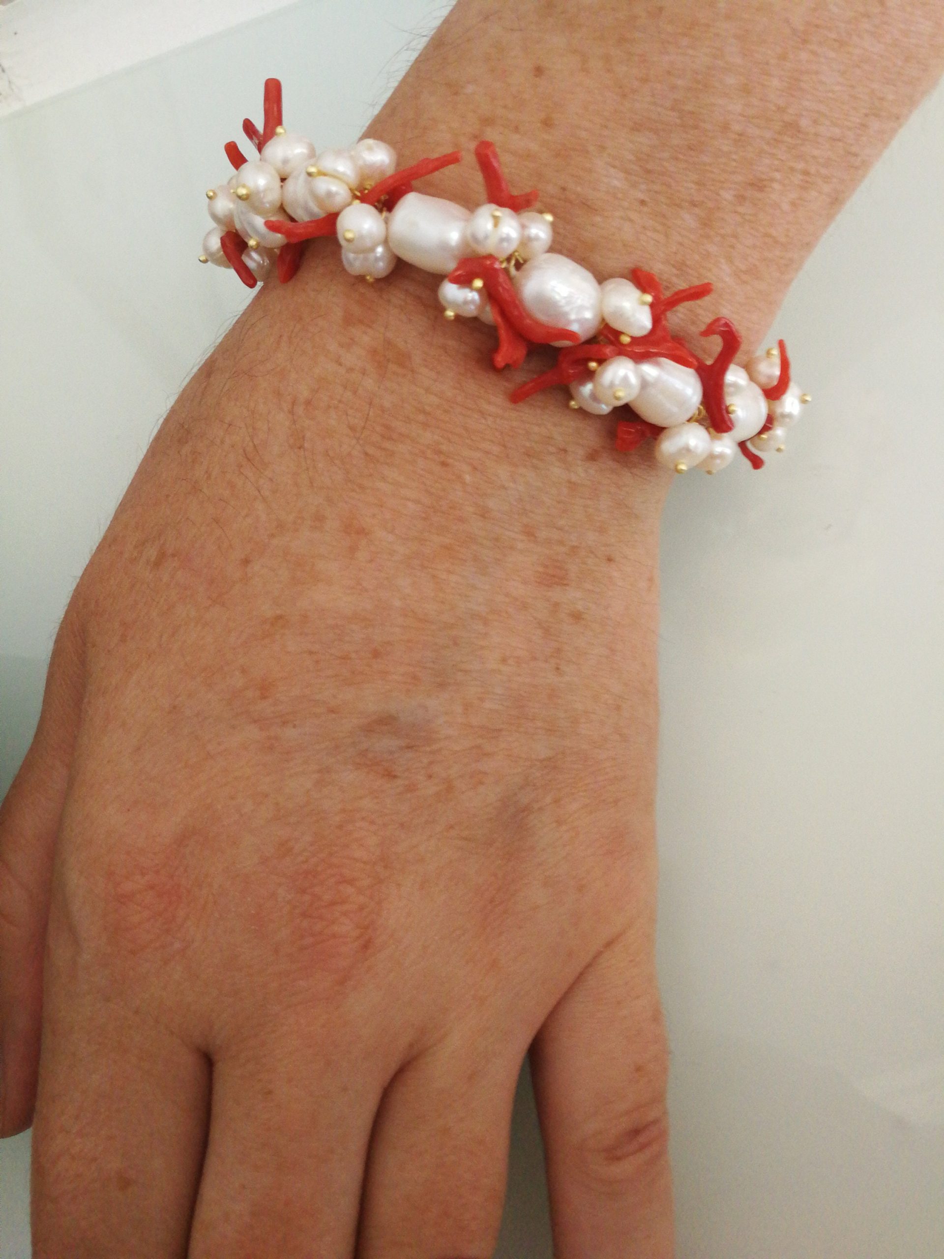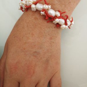 Bracciale corallo rosso naturale del mediterraneo e perle naturali barocche bianche.