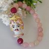 Bracciale testa di moro in ceramica di Caltagirone con pietre dure agata rosa , bracciale siciliano