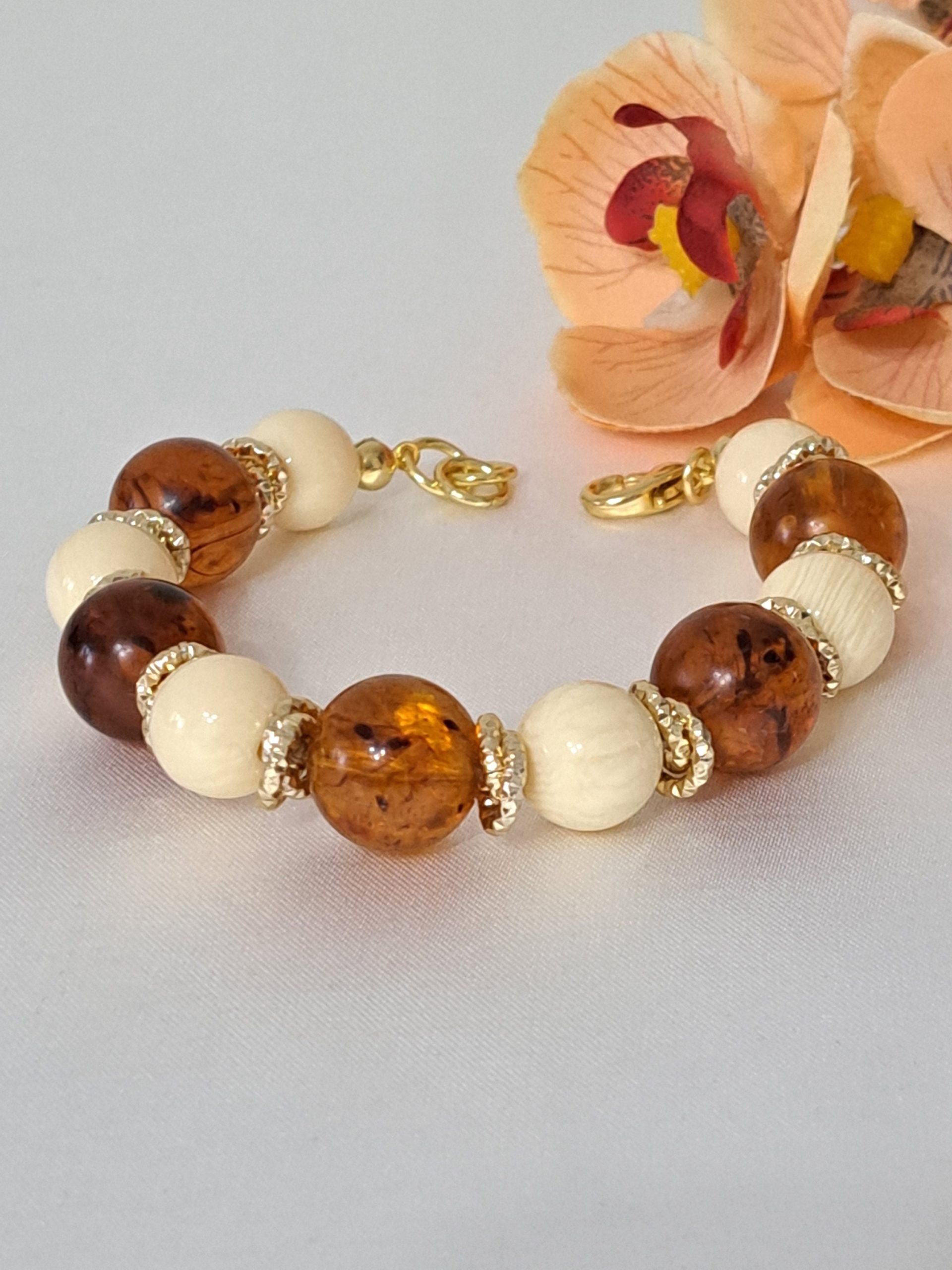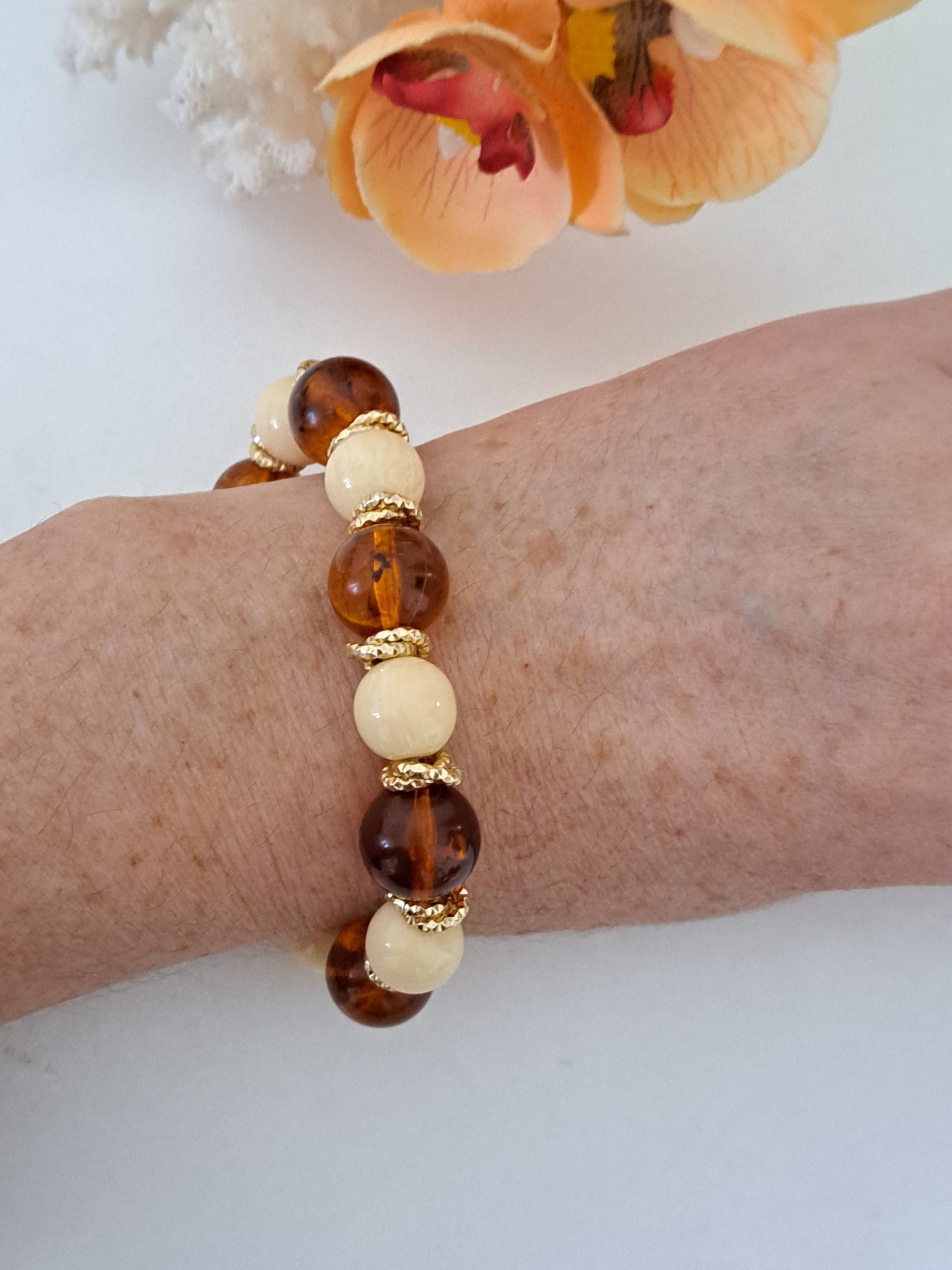 Bracciale perle ambra imitazione e avorio imitazione, bracciale maxi