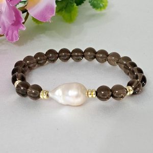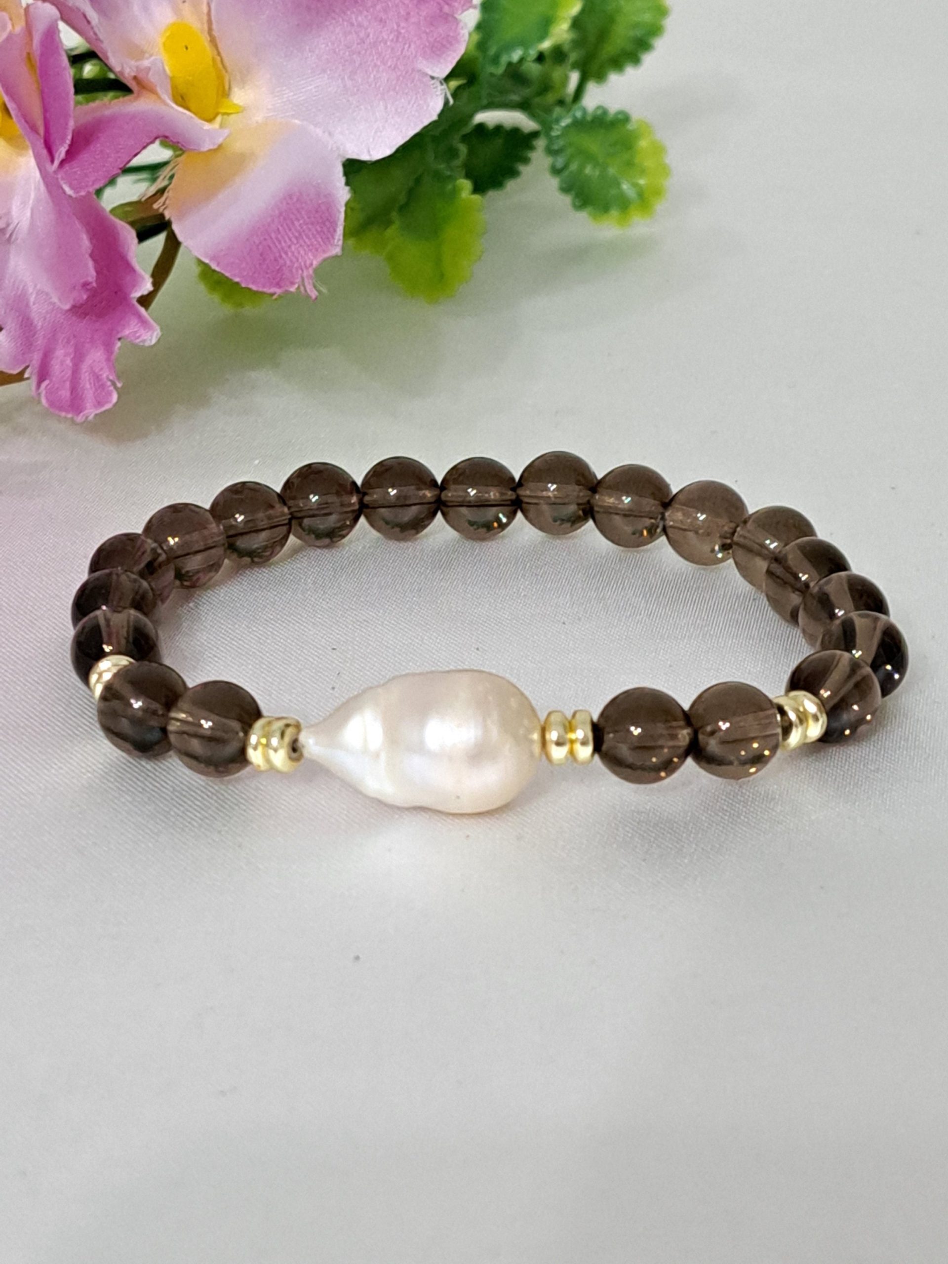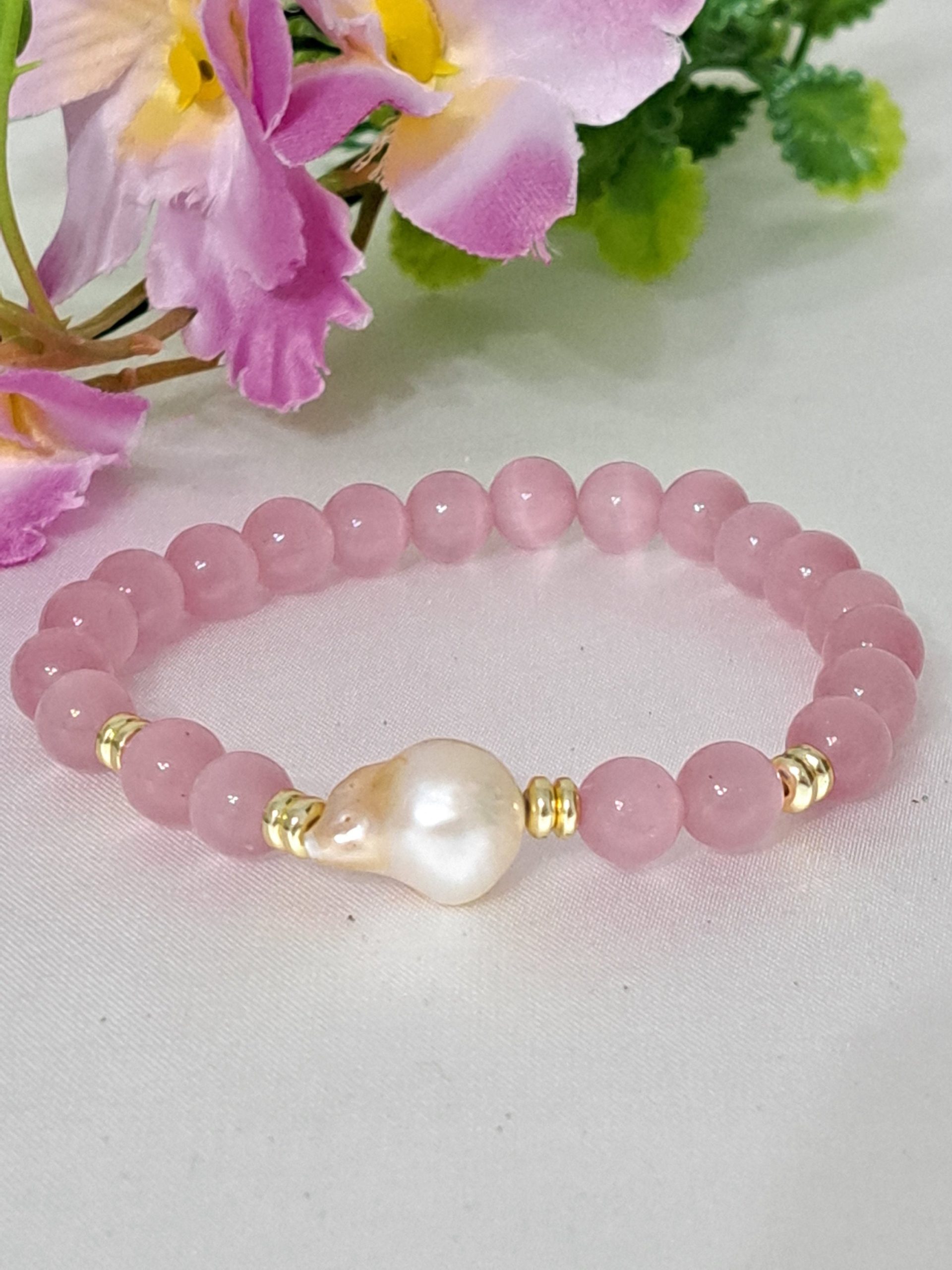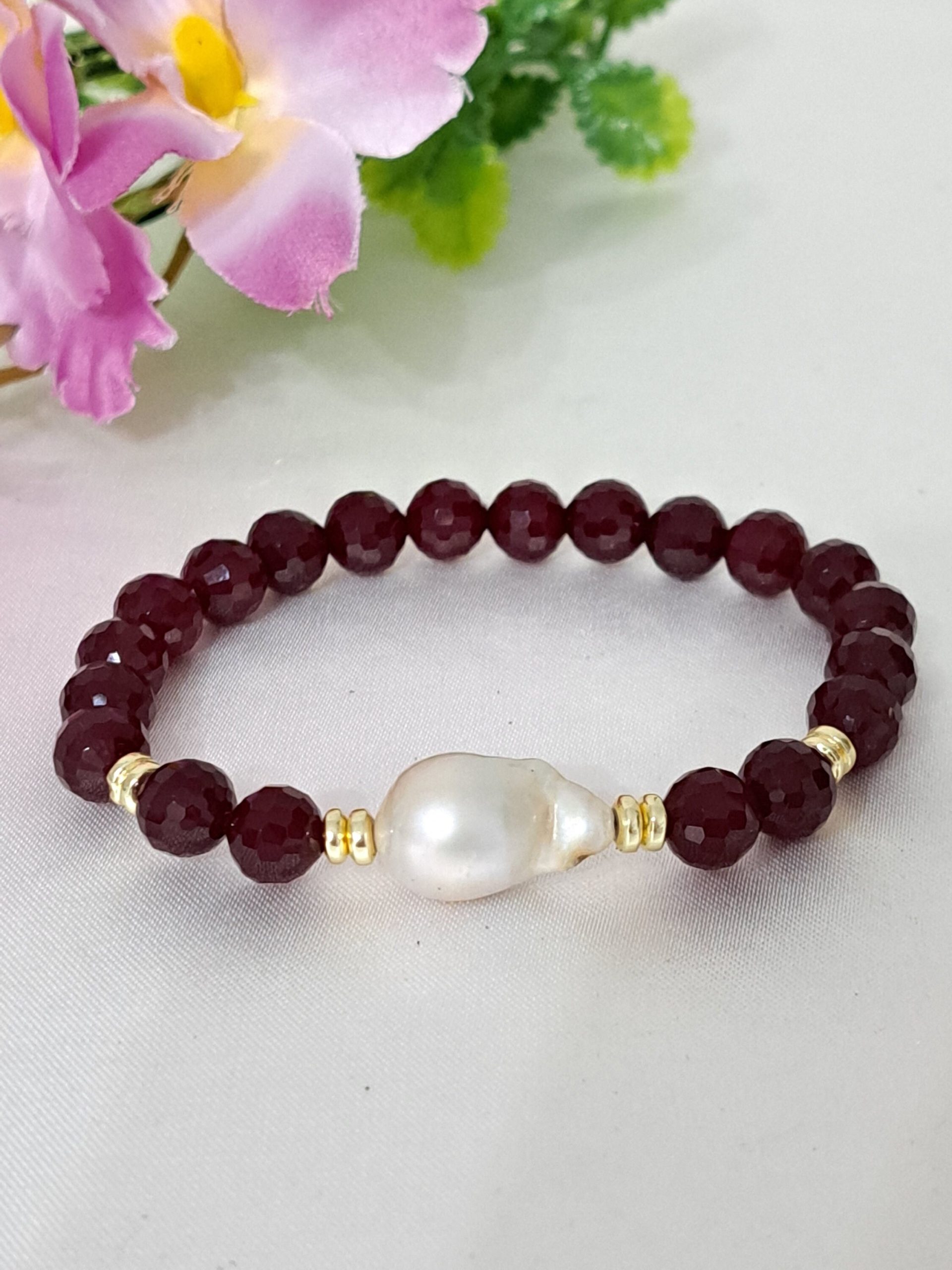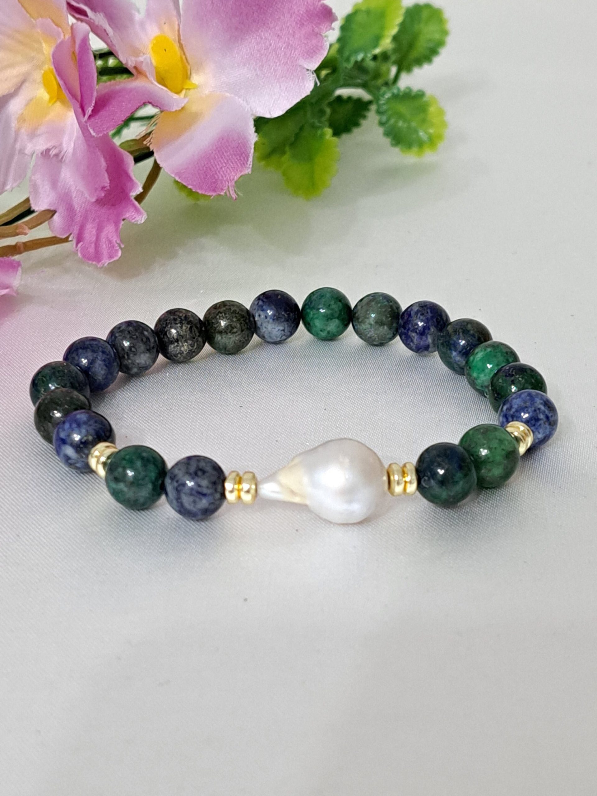 Bracciale perle bianche barocche e pietre dure naturali , bracciale elastico