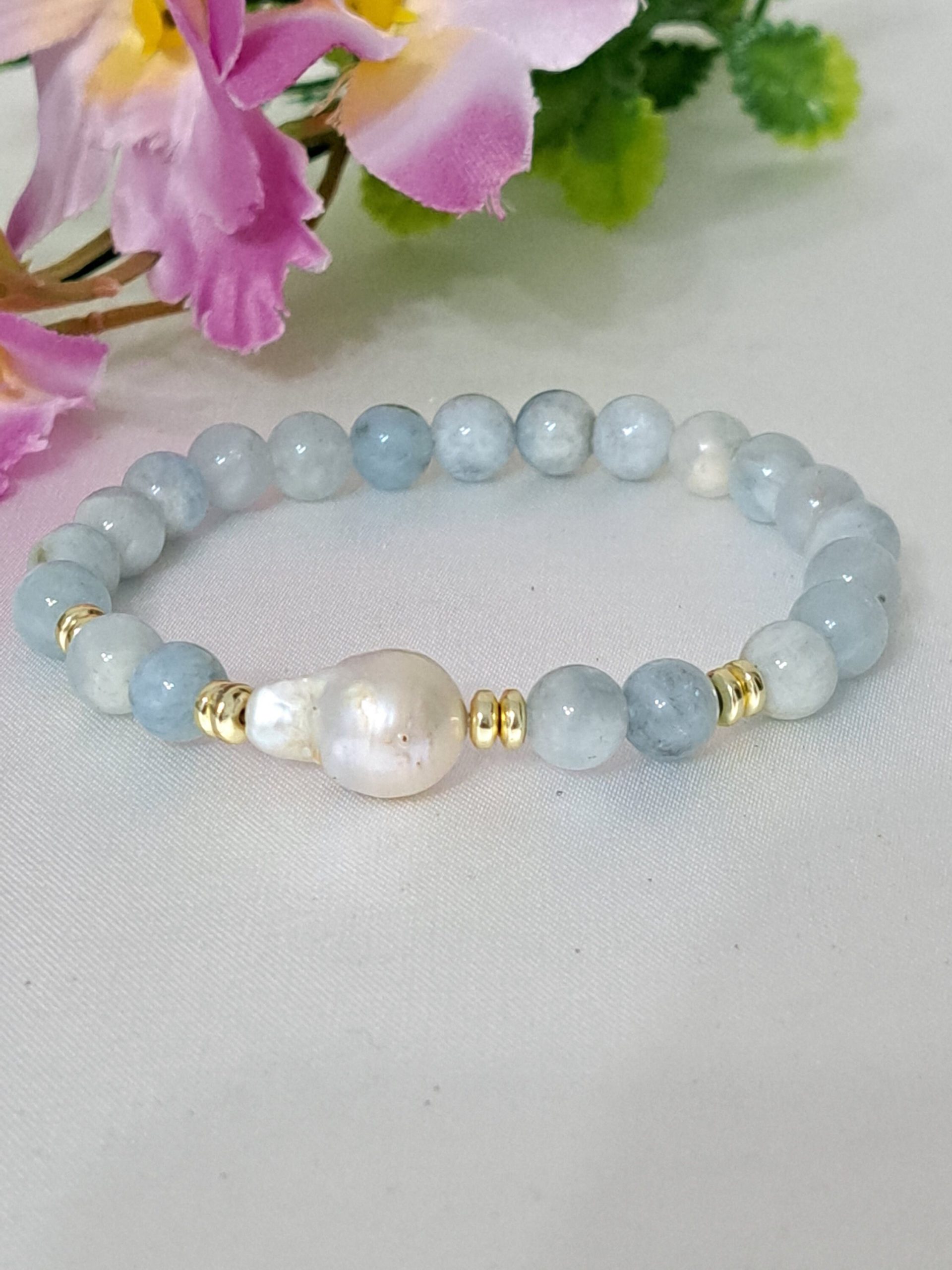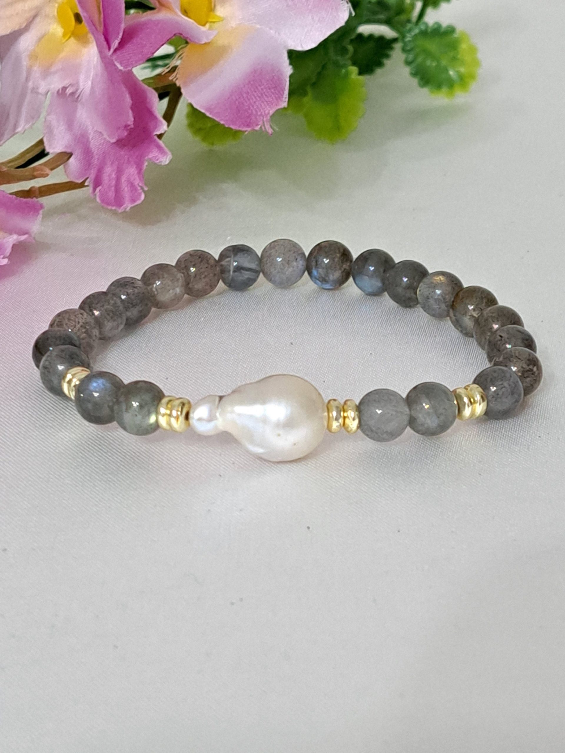 Bracciale elastico realizzato a mano con perle naturali bianche barocche e pietre dure naturali 6/7/8 mm dimensioni.