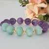 Bracciale perle pasta di turchese e fiori imitazione corallo, bracciale 3 fili elastico
