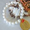 Bracciale perle bianche, moneta dorata e corallo rosso mediterraneo, bracciale elastico