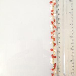 Bracciale elegante con perline naturale barocca bianca, e corallo rosso naturale del mediterraneo annodato.Particolare lavorazione. Misura lunghezza 19/21 cm. Regolabile