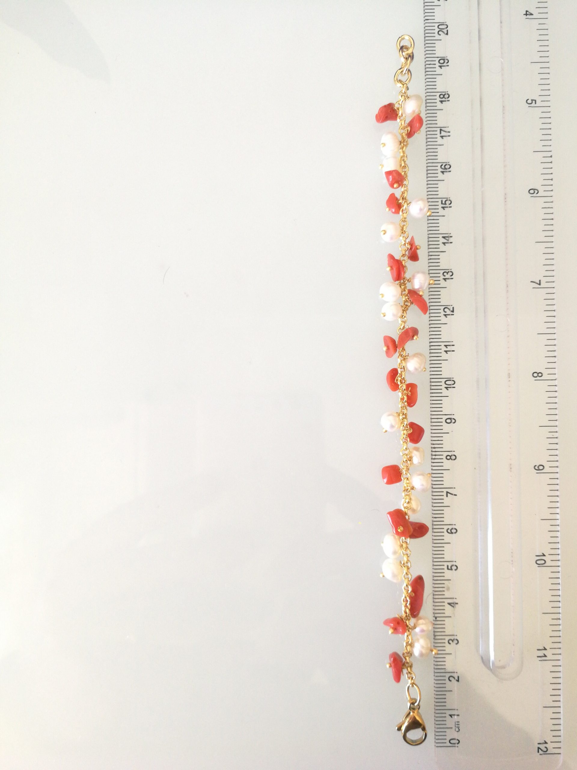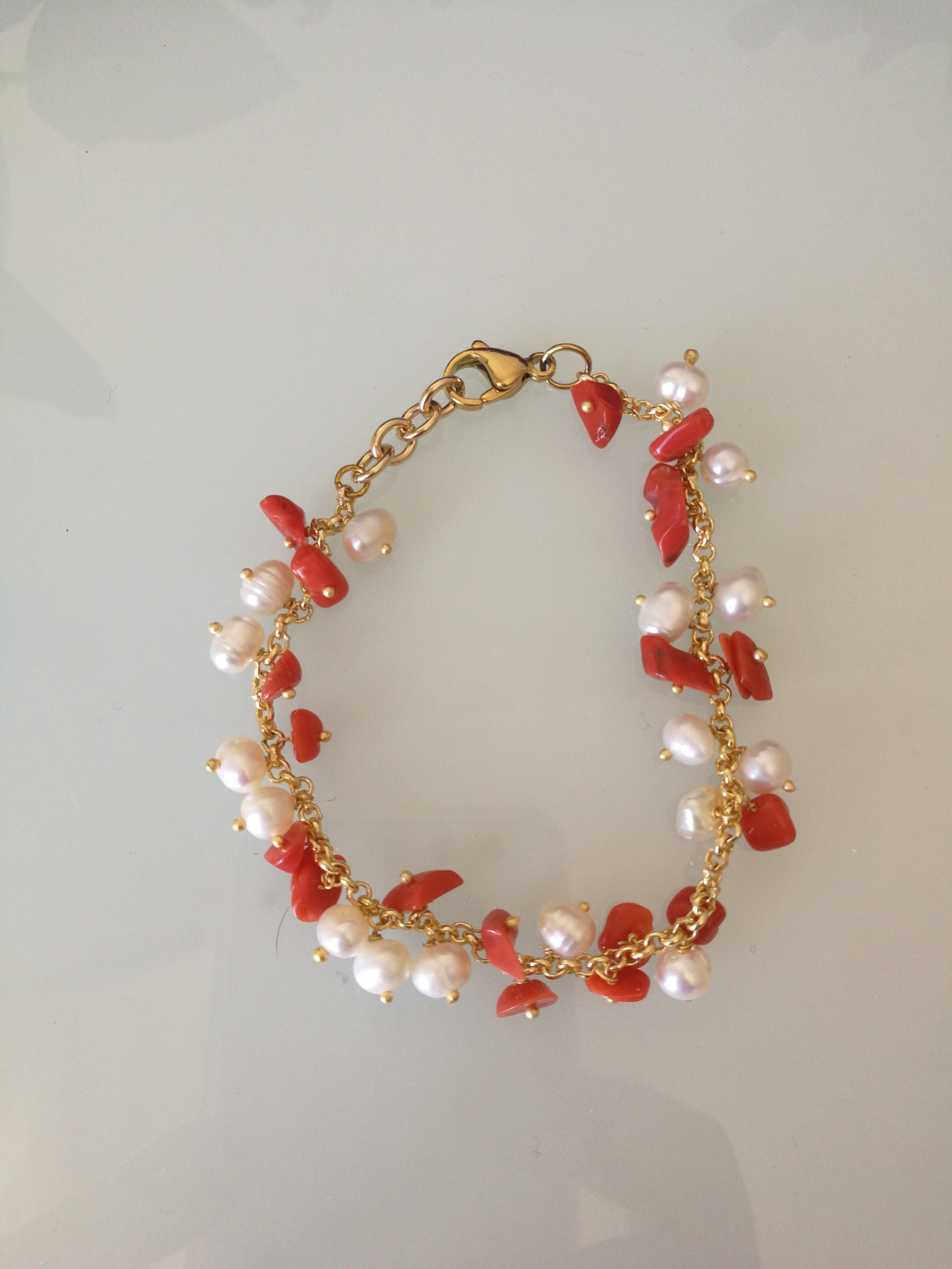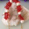 Bracciale perle naturali barocche bianche e corallo rosso naturale del mediterraneo.