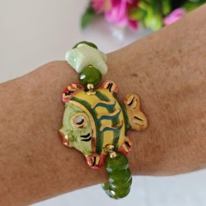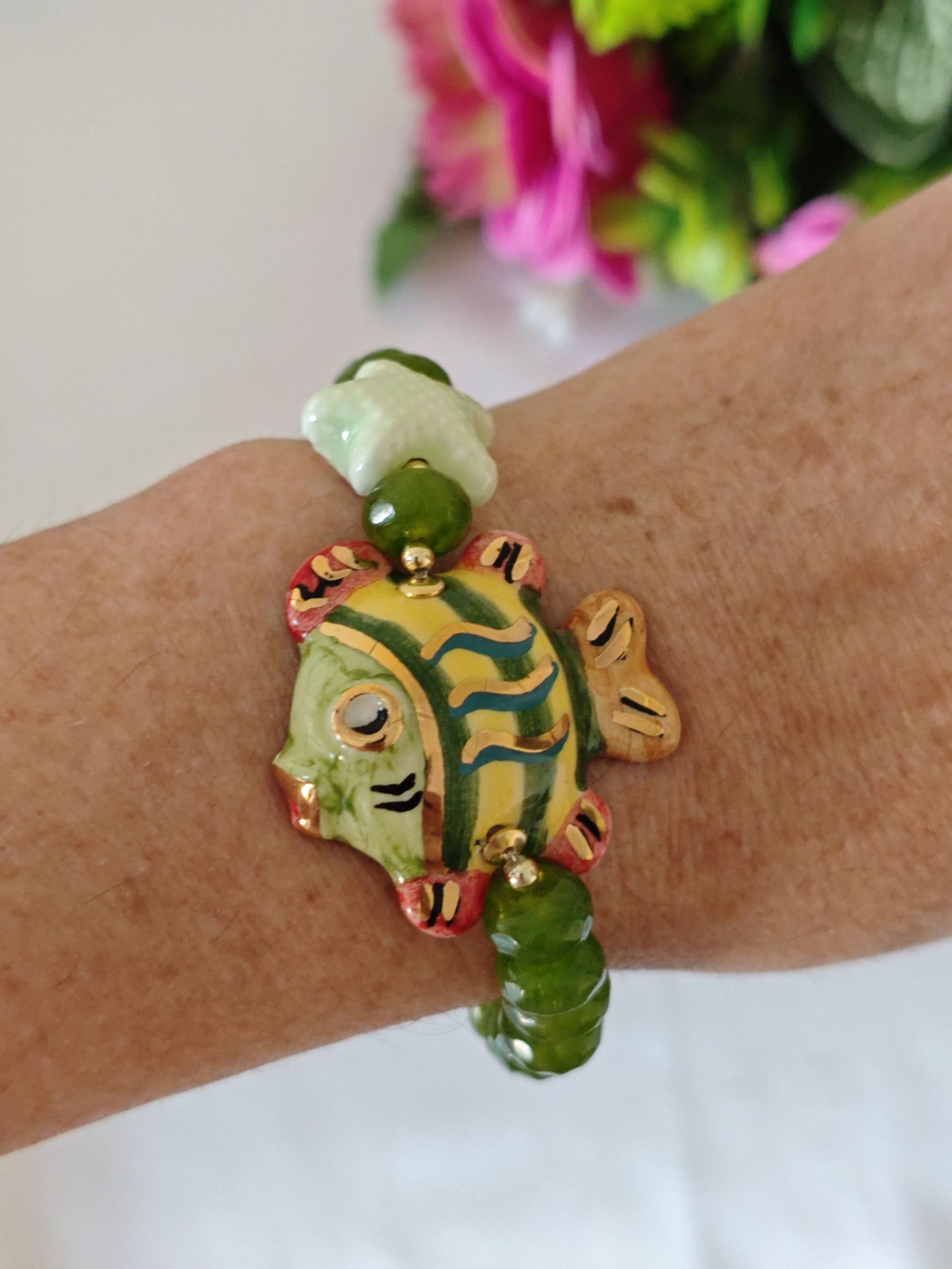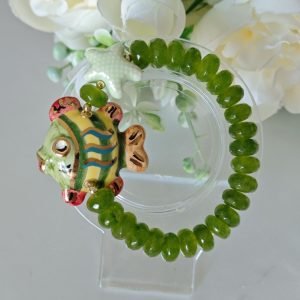 Bracciale pesce ceramica di Caltagirone e pietre peridoto verde , bracciale siciliano