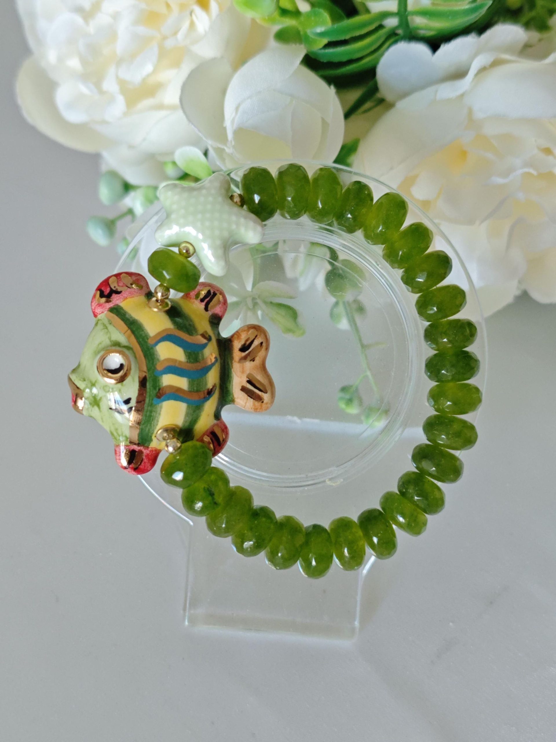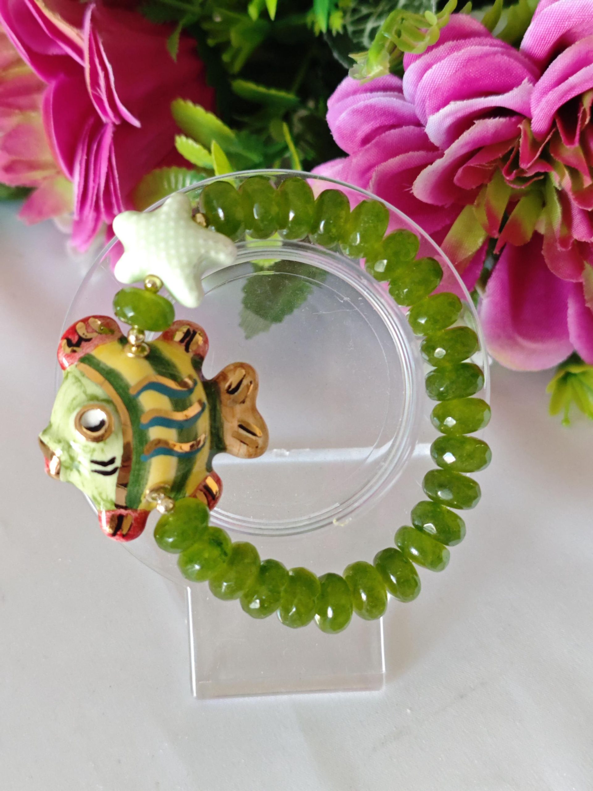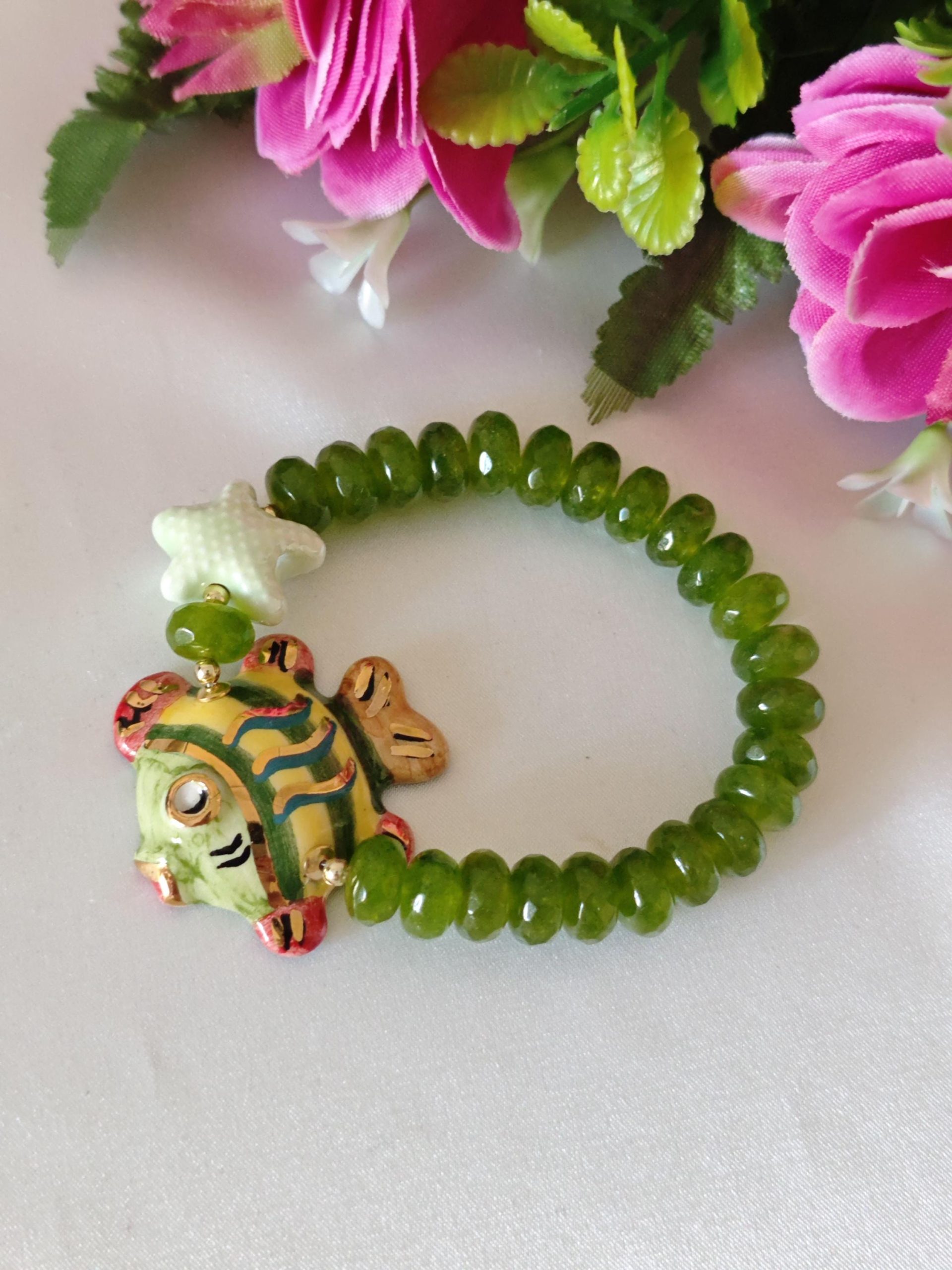 Categoria: Bracciali Siciliani Tag: bracciale_ceramica, bracciale_peridoto, bracciale_pesce, bracciale_pesci, bracciale_pietre, bracciale_siciliano, bracciale_stella, bracciale_verde, ceramica_Caltagirone, stella_marina