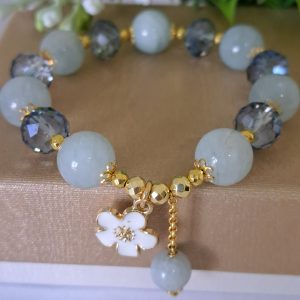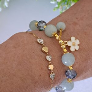 Bracciale pietre dure angelite rosa con fiore ottone dorato