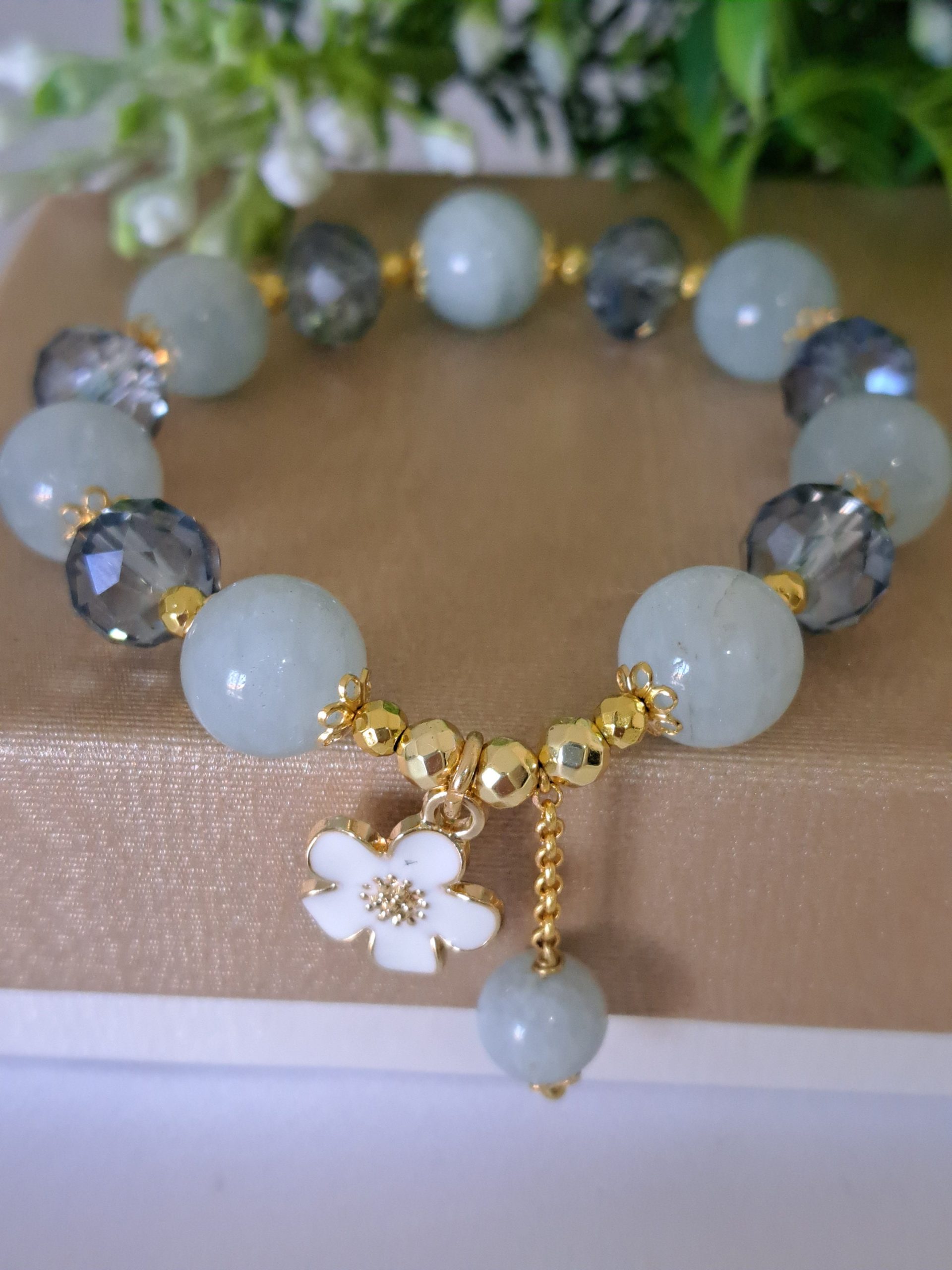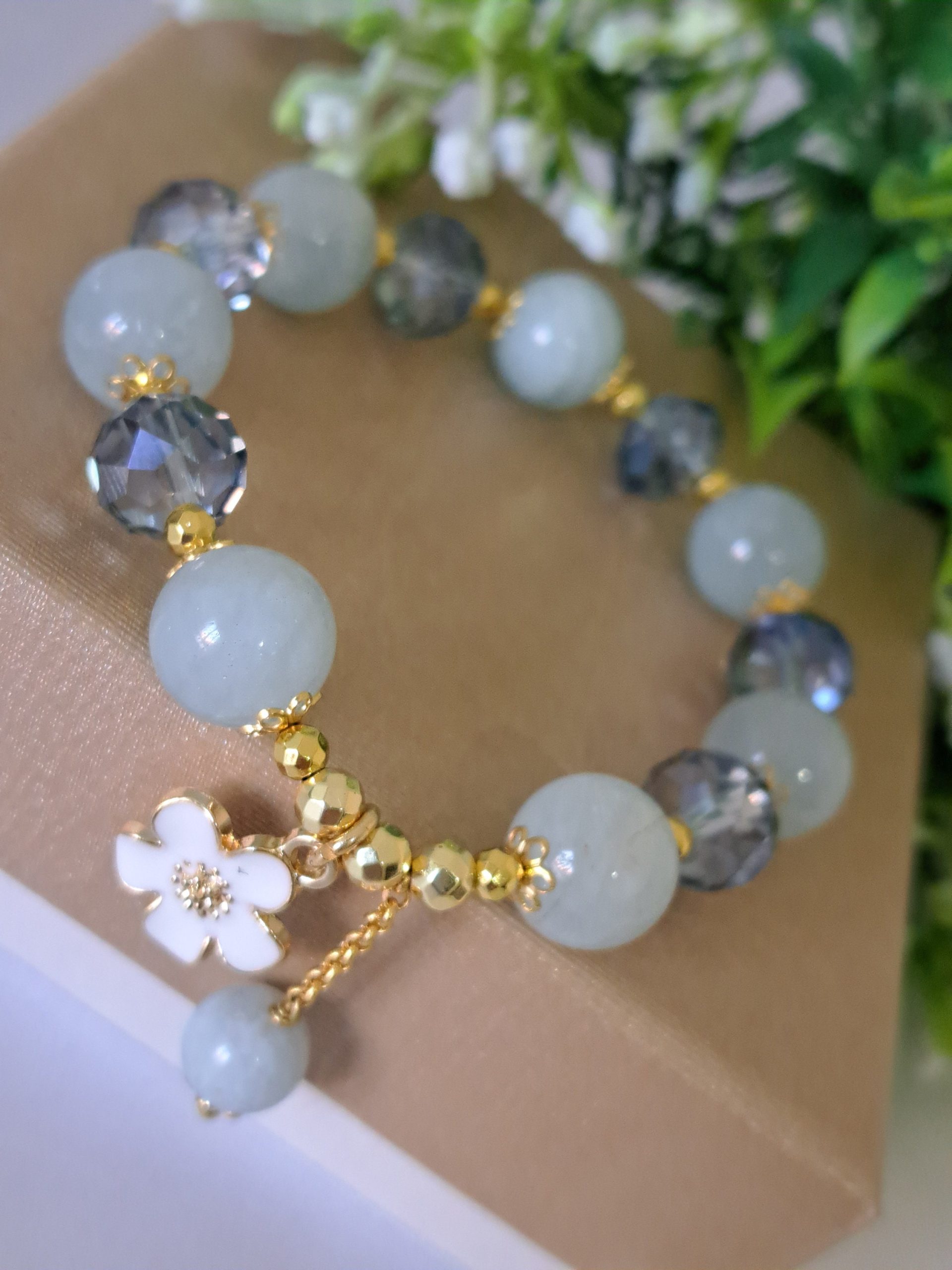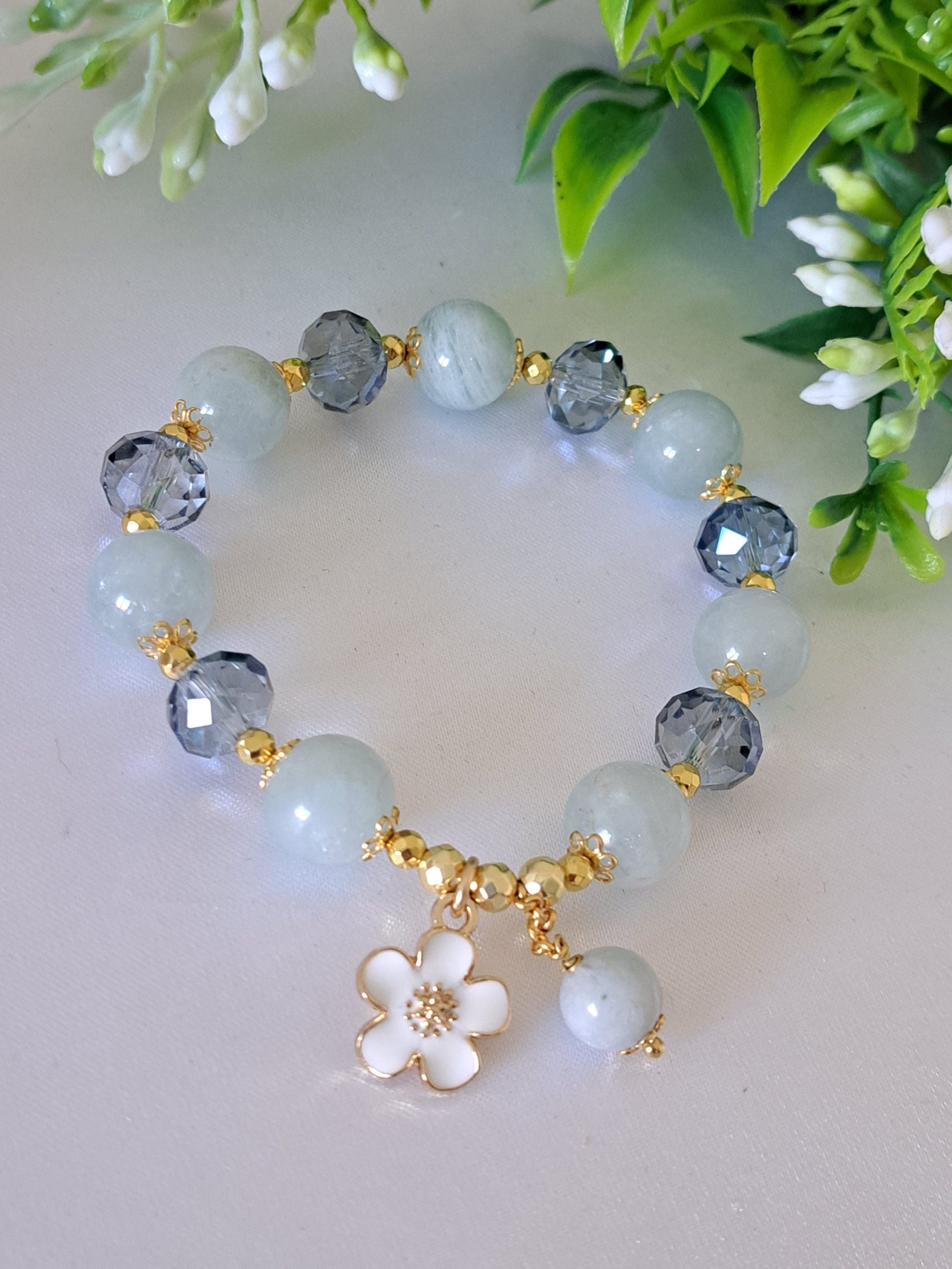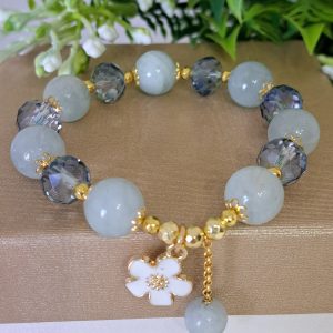 Bracciale pietre dure acquamarina con cristalli , bracciale fiore