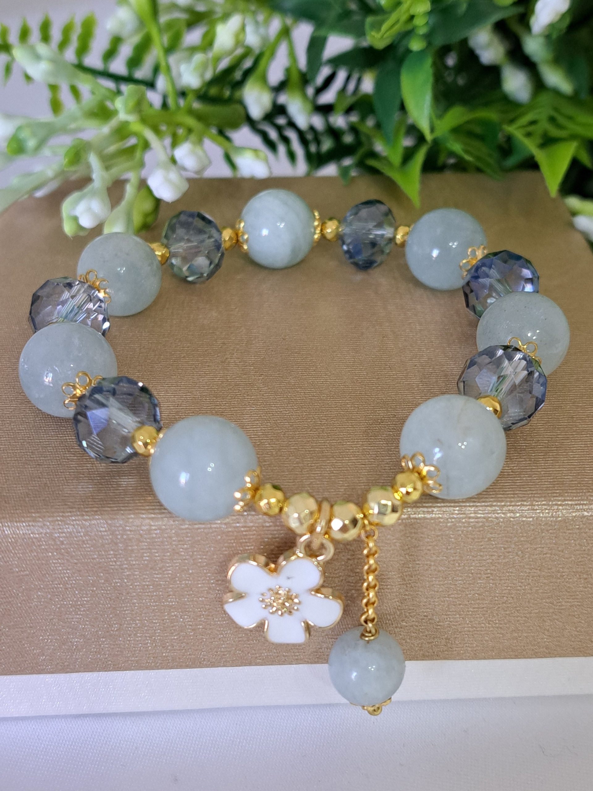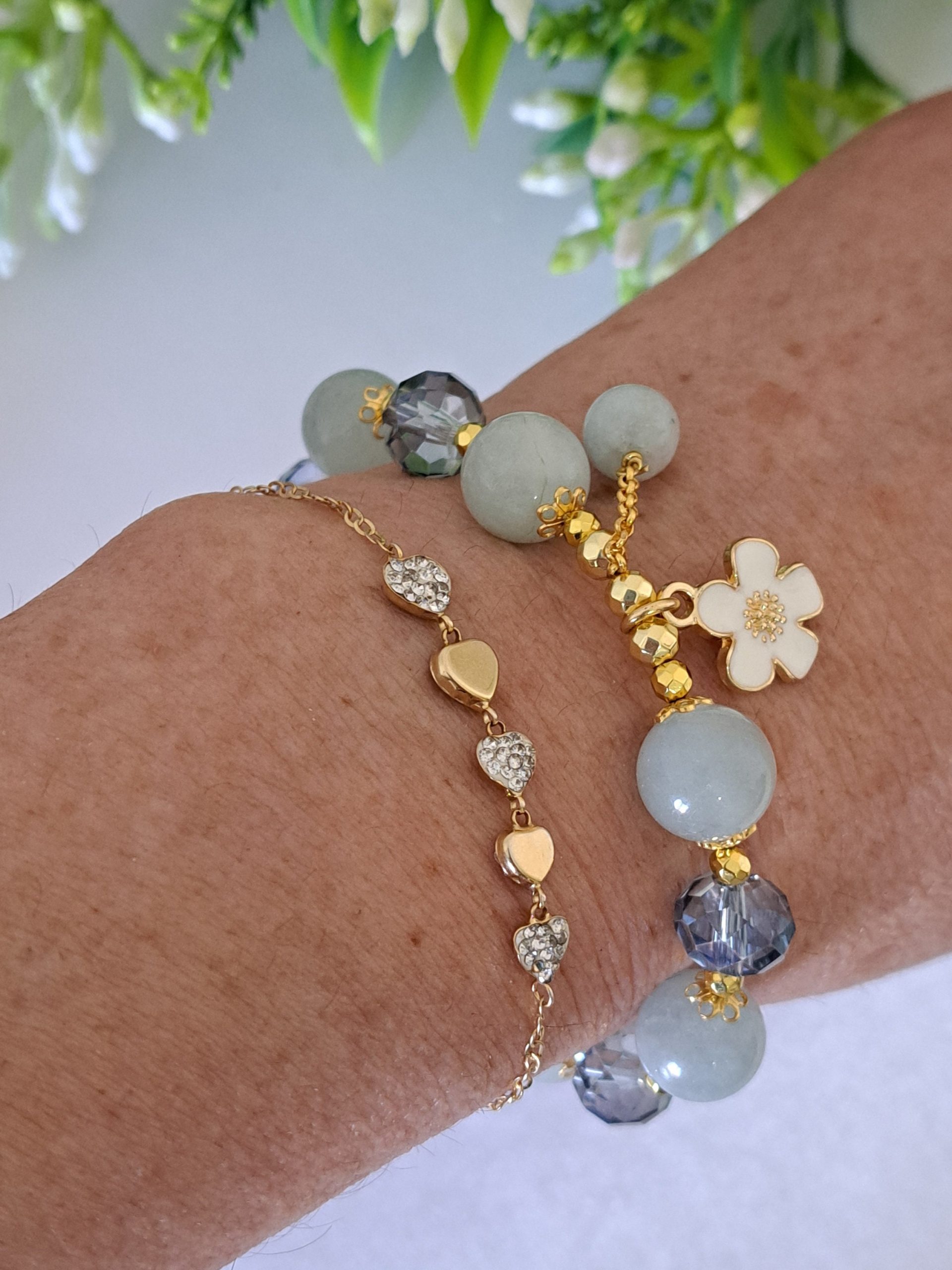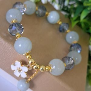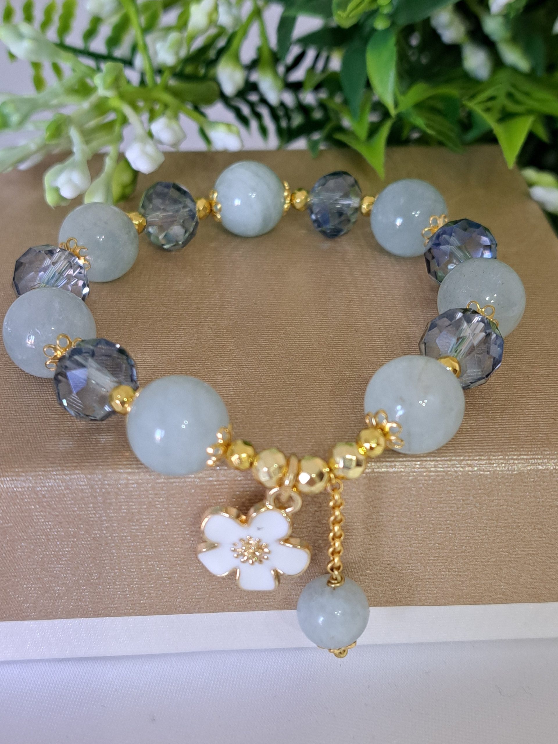 Bracciale pietre dure acquamarina con cristalli , bracciale fiore