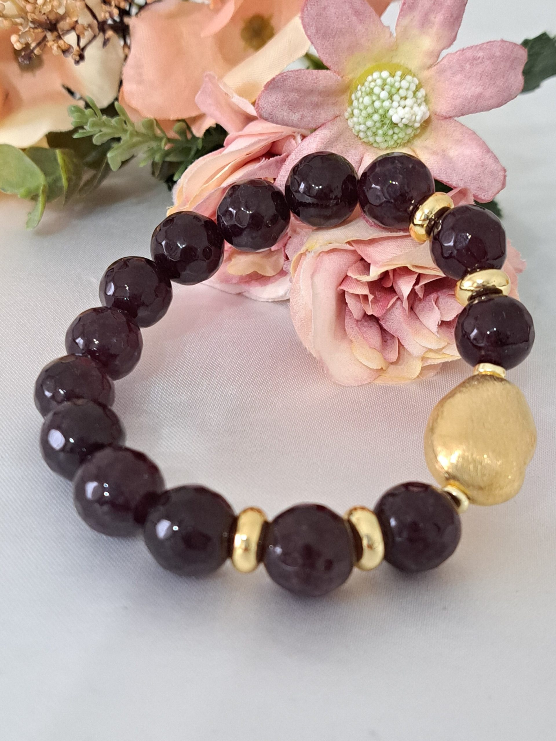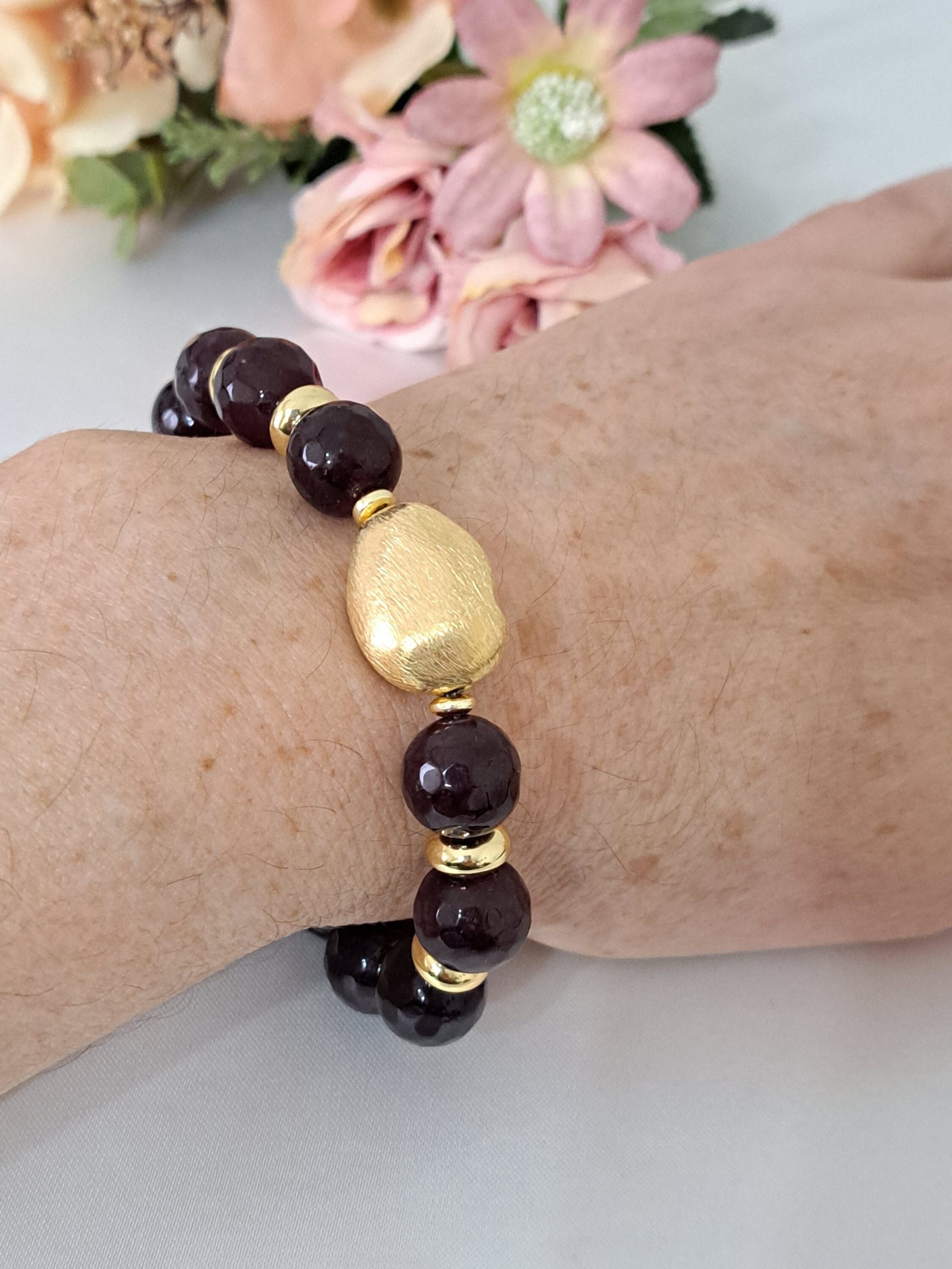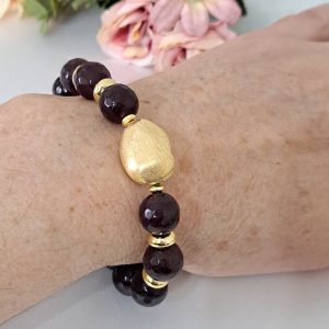 Bracciale pietre dure granato con perla dorata