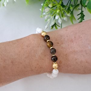 Bracciale pietre dure onice bianco e quarzo occhio di tigre