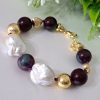 Bracciale pietre dure agata e angelite rosa con perle barocche bianche, bracciale maxi